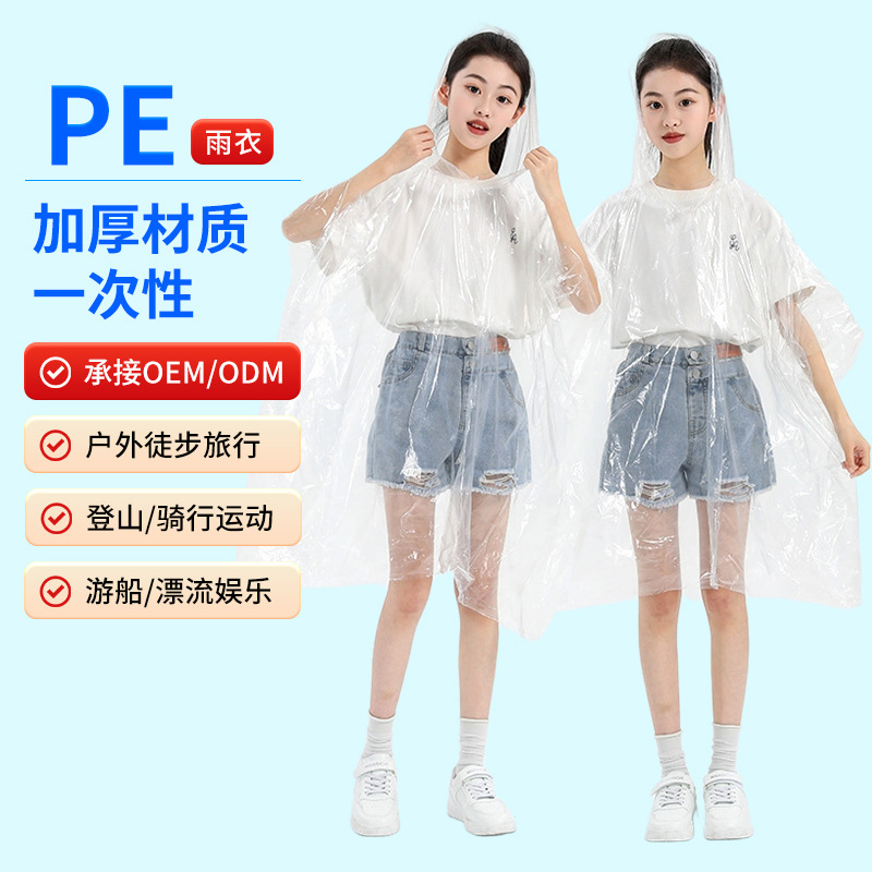 일회용 어린이 비옷 휴대용 야외 하이킹 후드 비옷 경치 좋은 지역 래프팅 투명 원피스 판초 도매