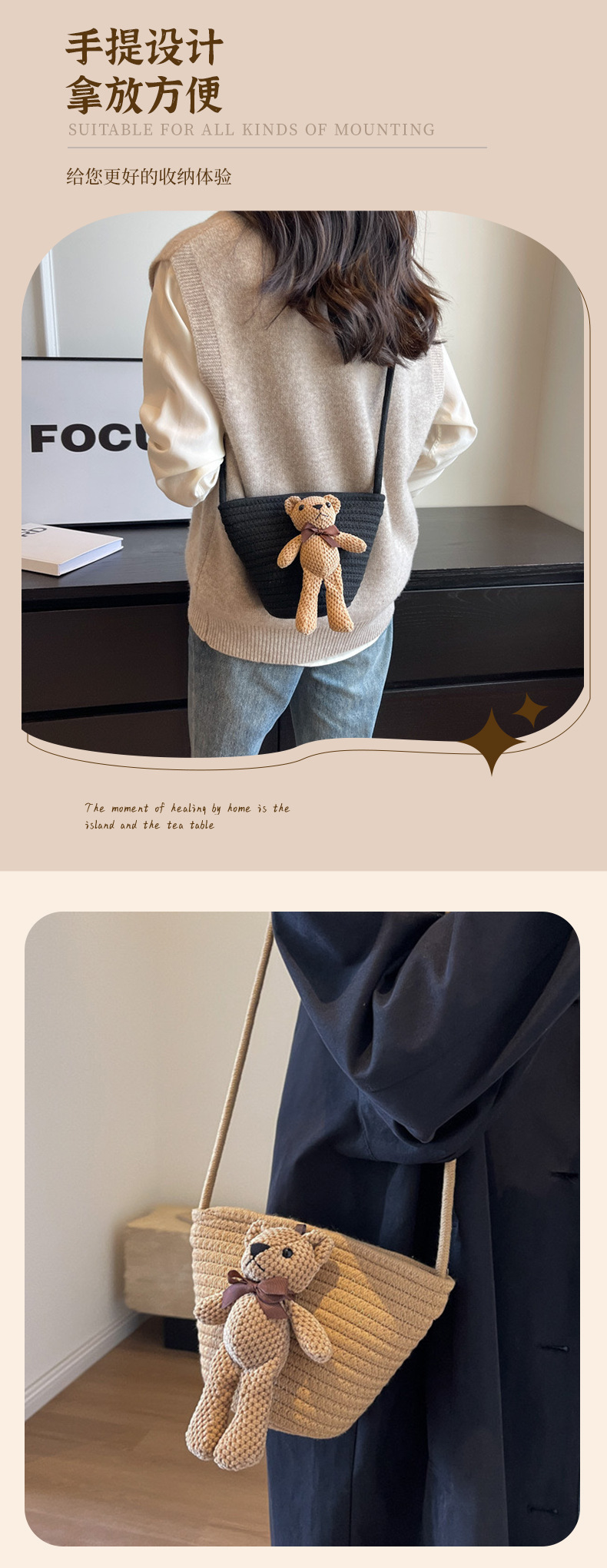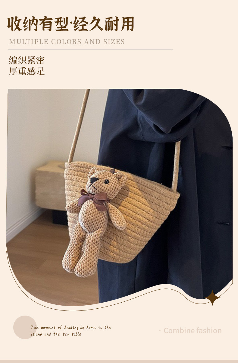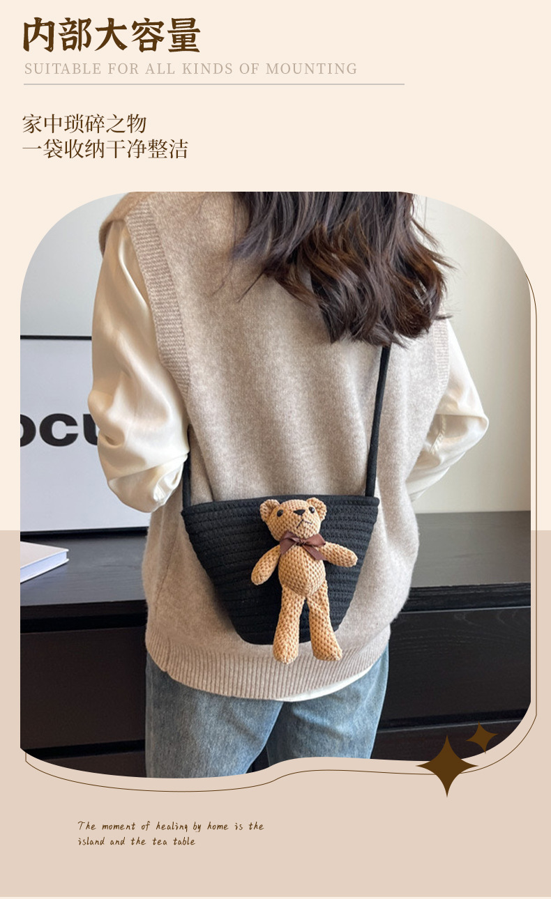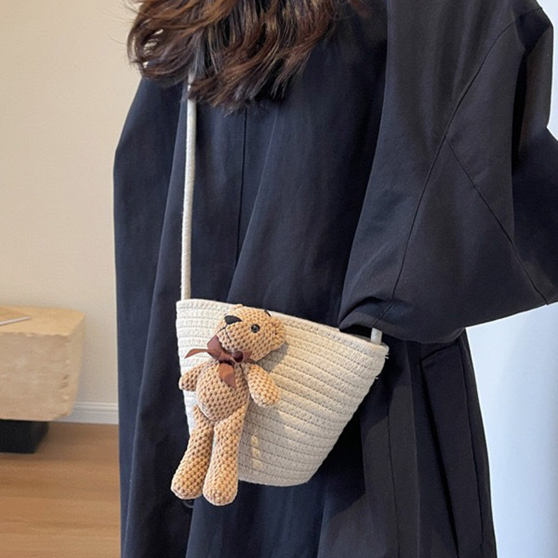 새로운 여름 신선한 스타일 짠 작은 양동이 가방 어깨 크로스 바디 모리 소녀 곰 가방 독특한 귀여운