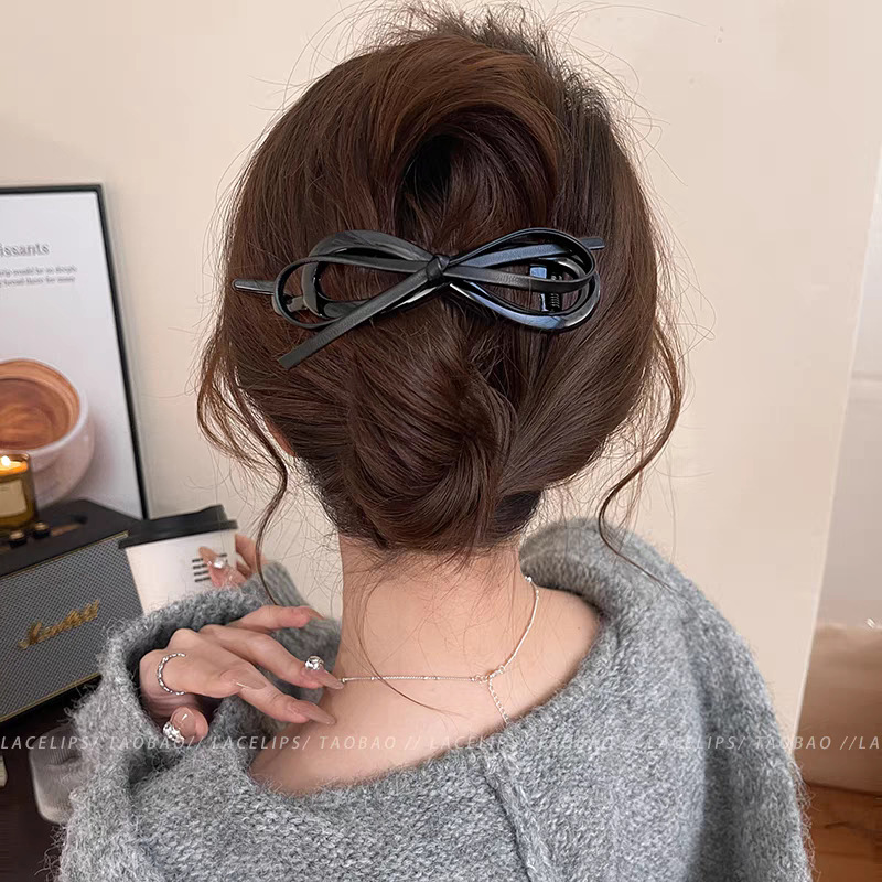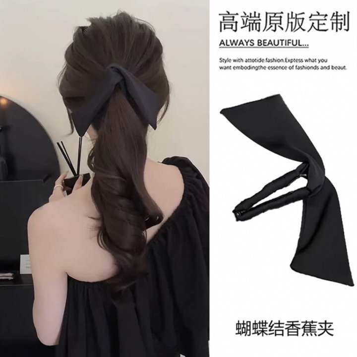 • 124#검정 새틴 리본 바나나 클립 - 13cm