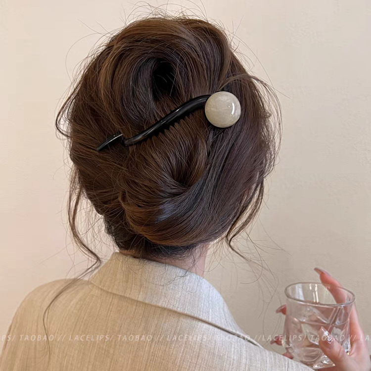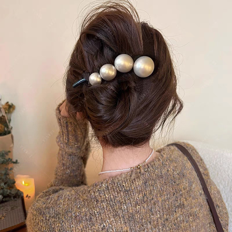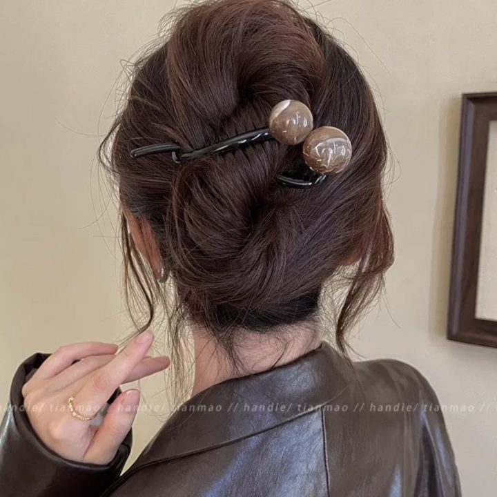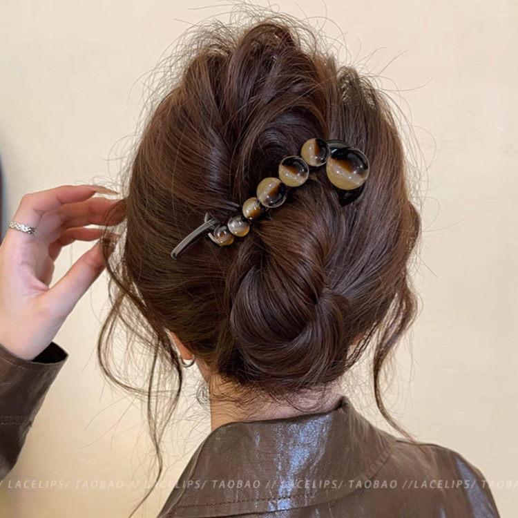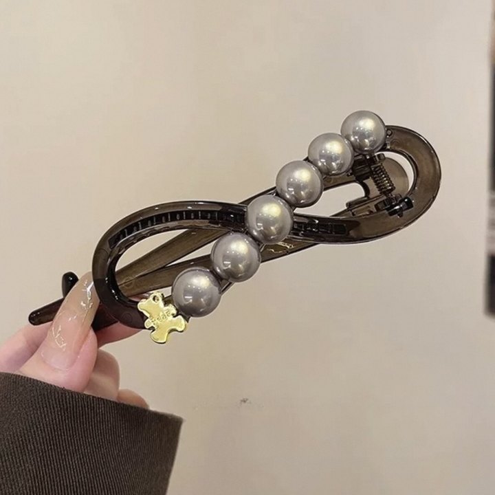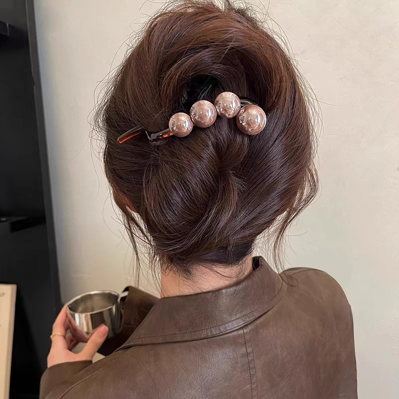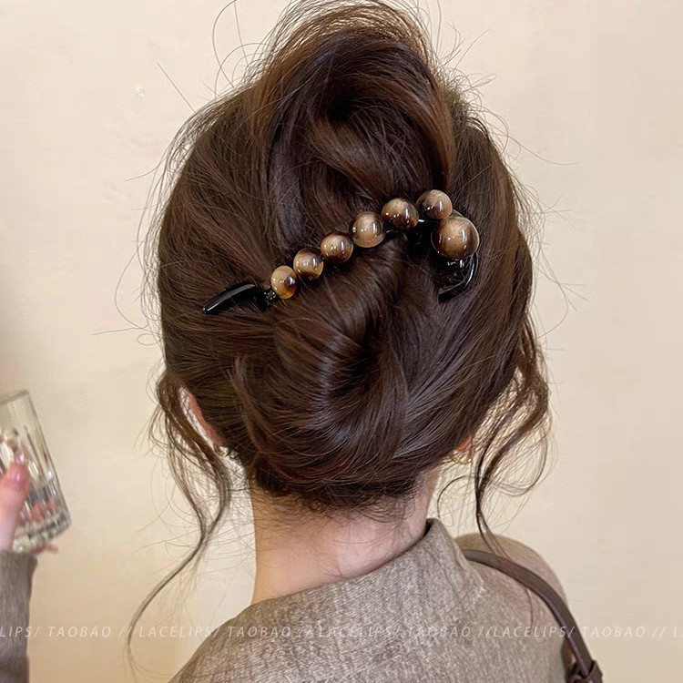 • 4#밀크티 컬러 더블 비즈 트위스트 클립