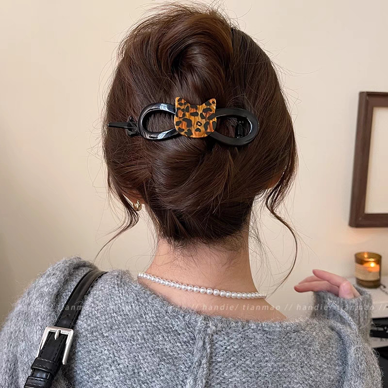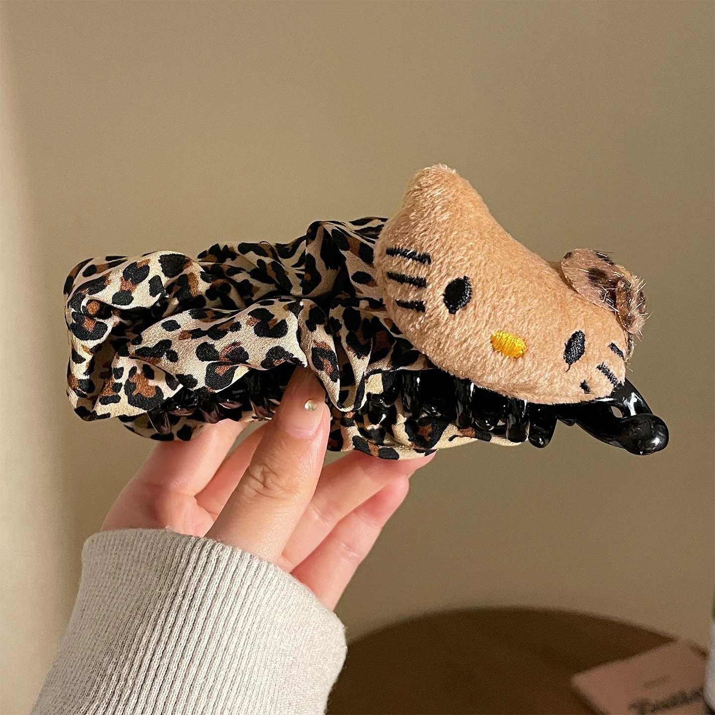 • 142#브라운 호피무늬 KT 고양이 바나나 클립-13cm