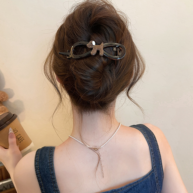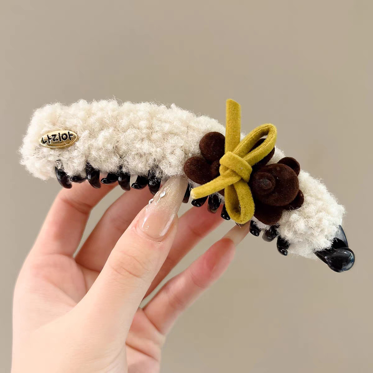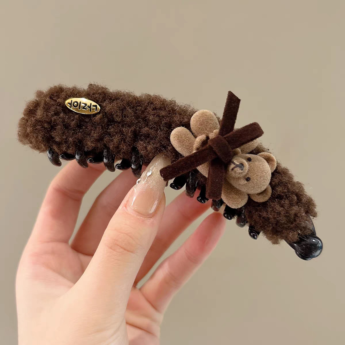 • 134#갈색 털실 곰돌이 바나나 클립 - 13cm