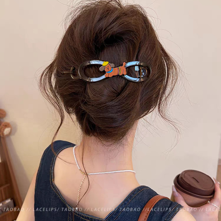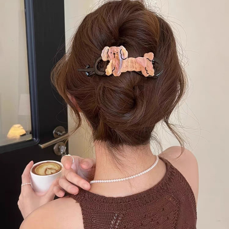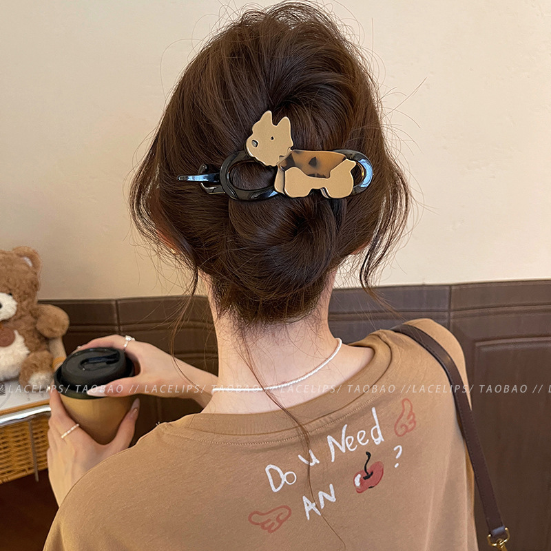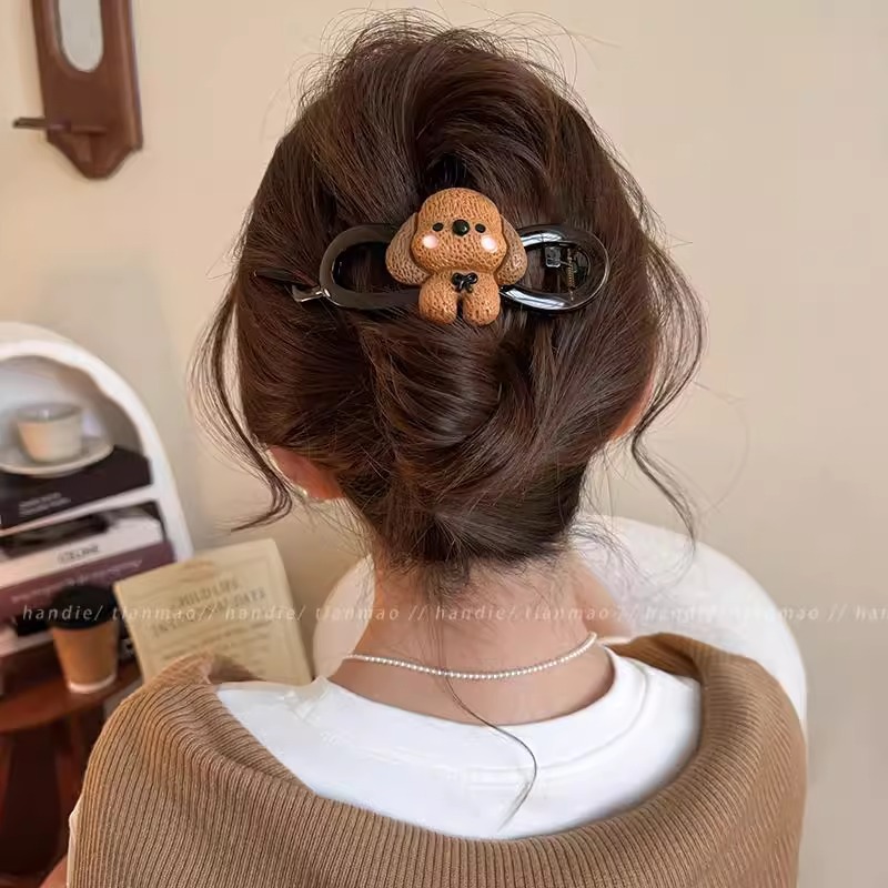 • 112#갈색 반점 강아지 트위스트 클립-11cm