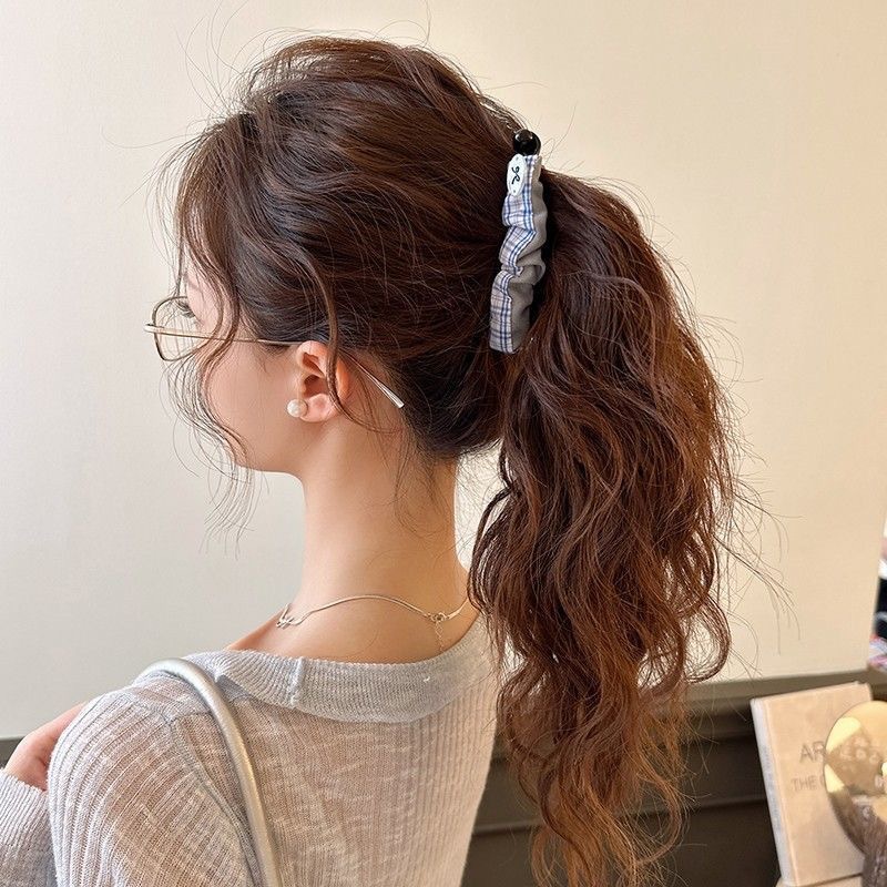 • 129#카키 체크 리본 바나나 클립 - 12.5cm