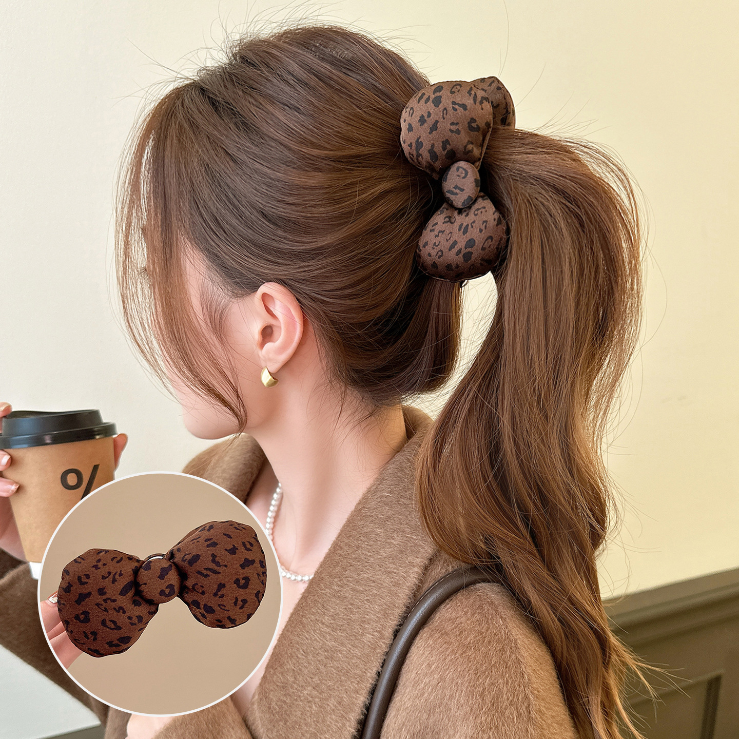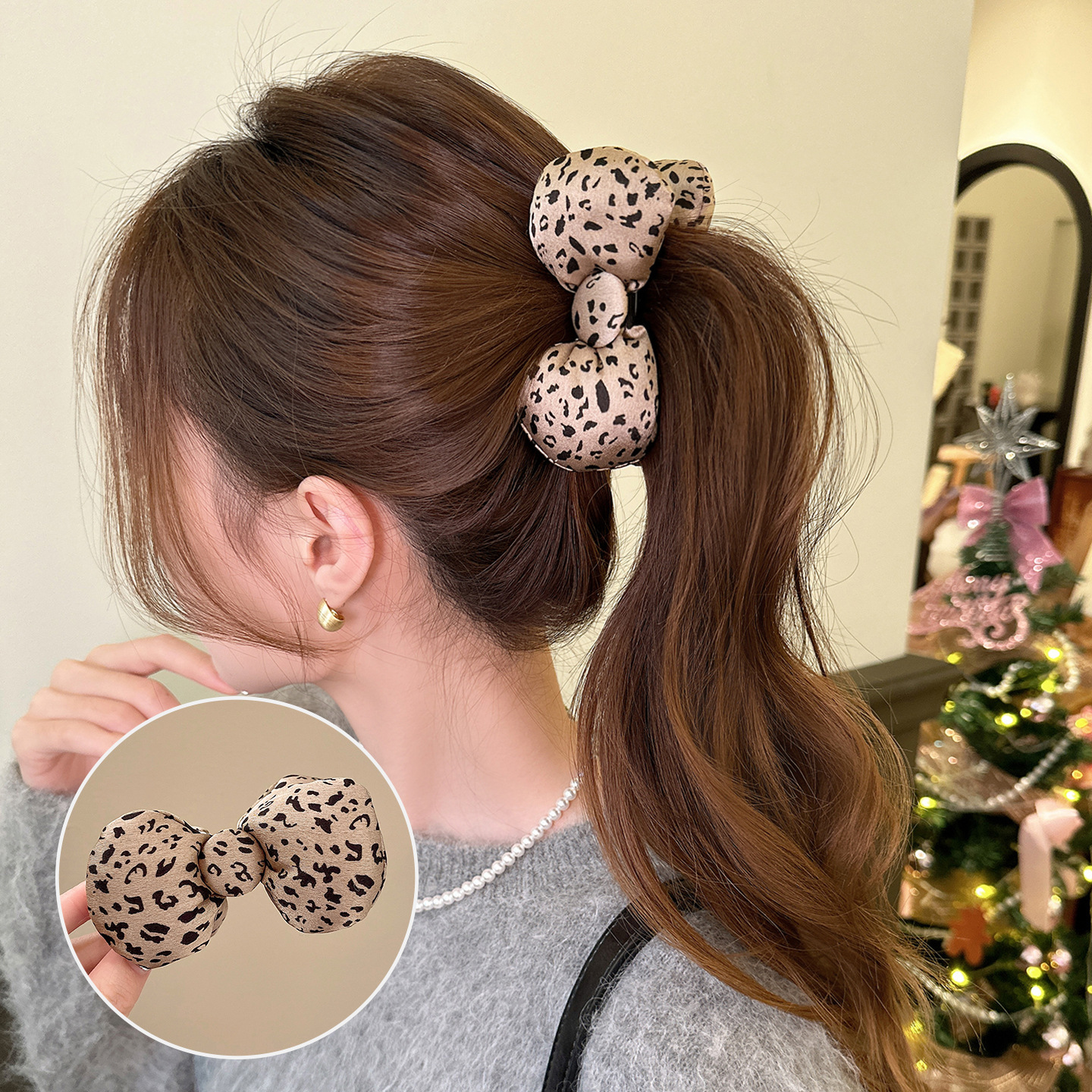 • 121#카키 레오파드 리본 바나나 클립 - 10cm