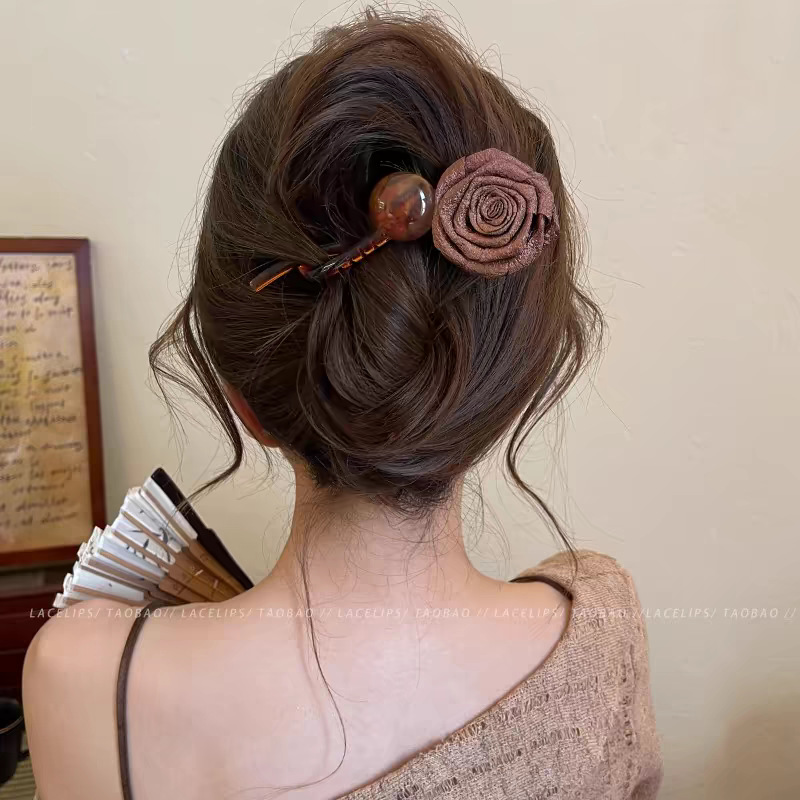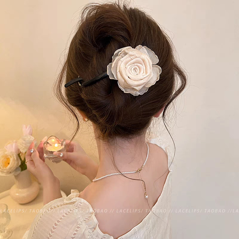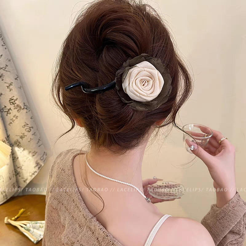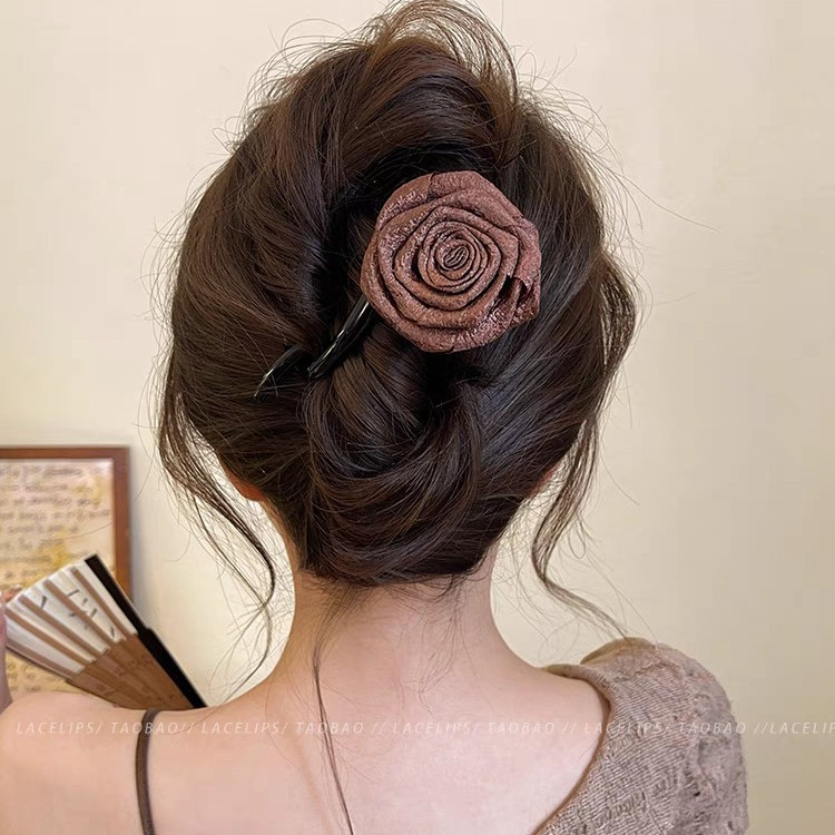 고급 로즈 플라워 트위스트 클립 여성의 2025 새로운 백 헤드 클립 그랩 클립 올 매치 헤어핀 헤어 액세서리