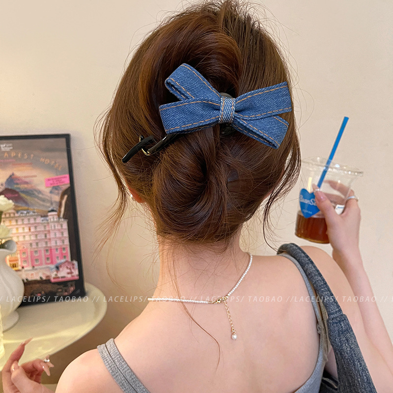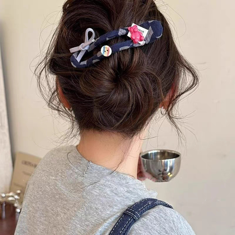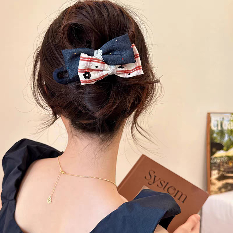 • 데님 레드 스트라이프 보우 덕빌 클립