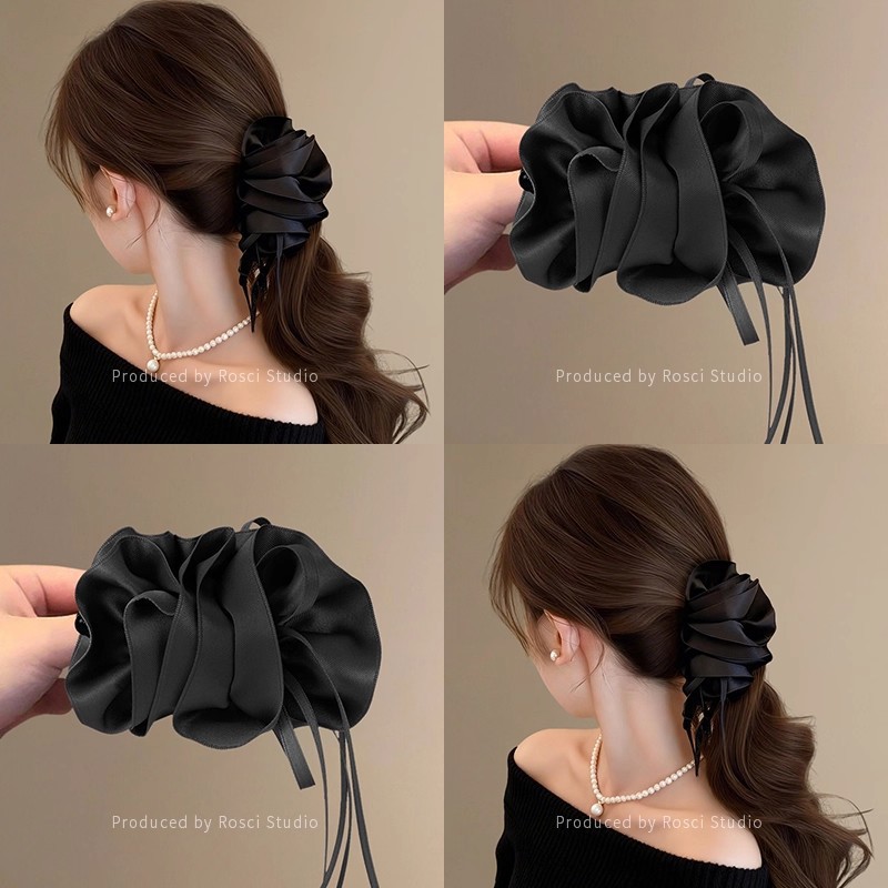 • 144#검정 새틴 플라워 바나나 클립 - 9.5cm