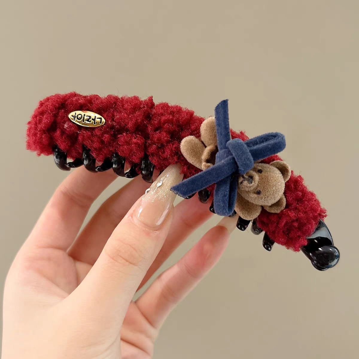 • 133#버건디 플러시 베어 바나나 클립-13cm