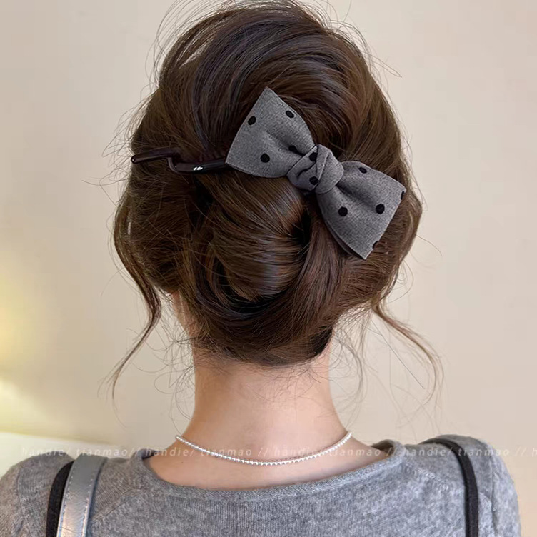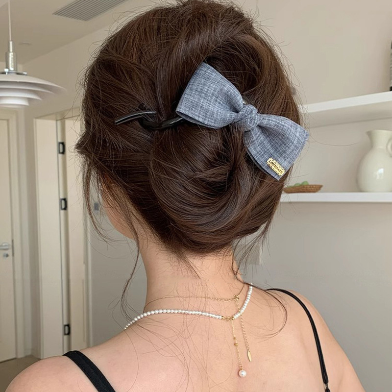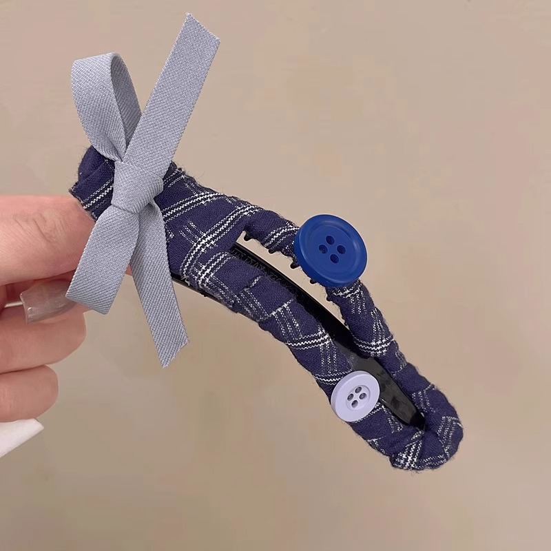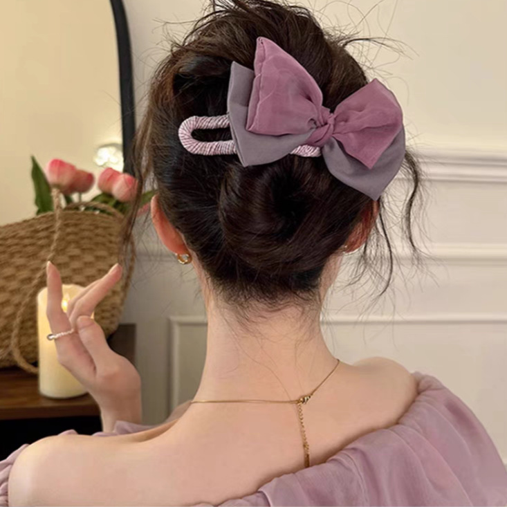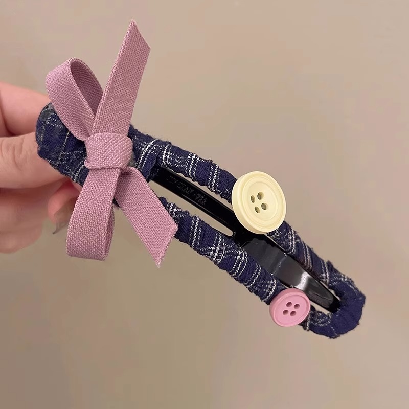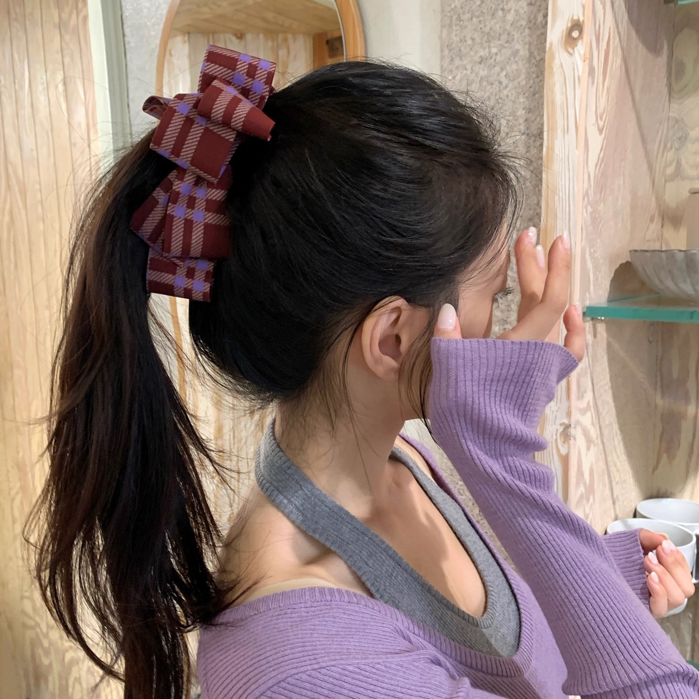 • 126#보라색 체크무늬 리본 바나나 클립-13cm