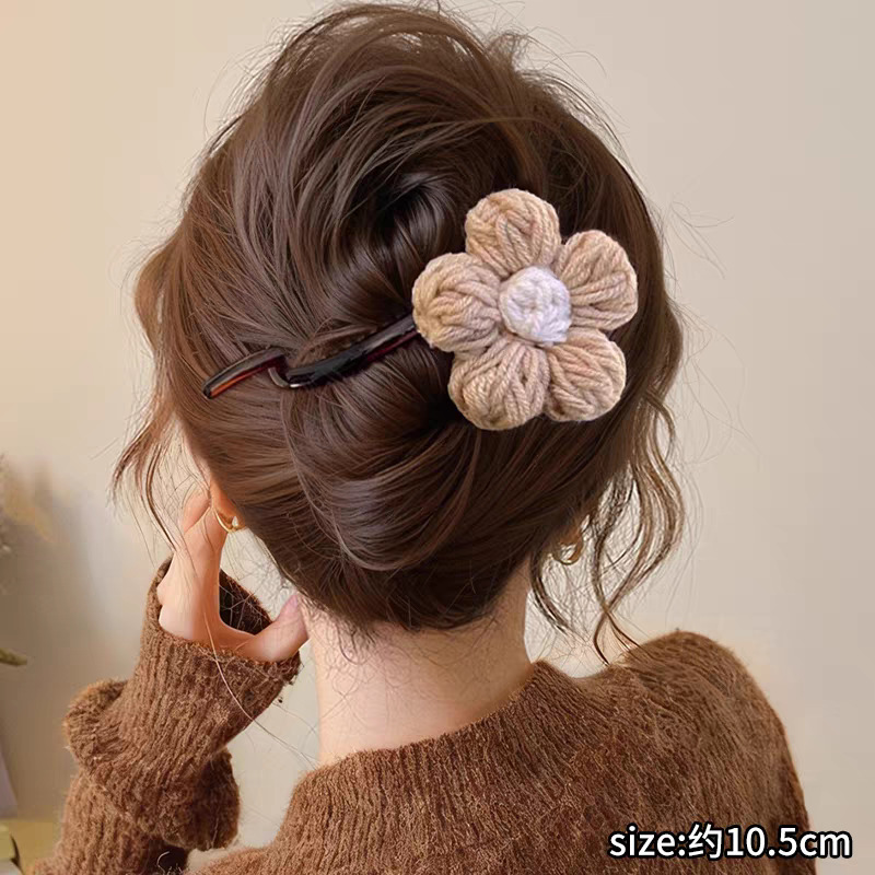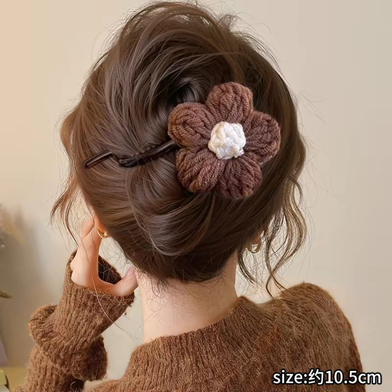 • 117#라이트 커피 울 플라워 트위스트 클립-11cm