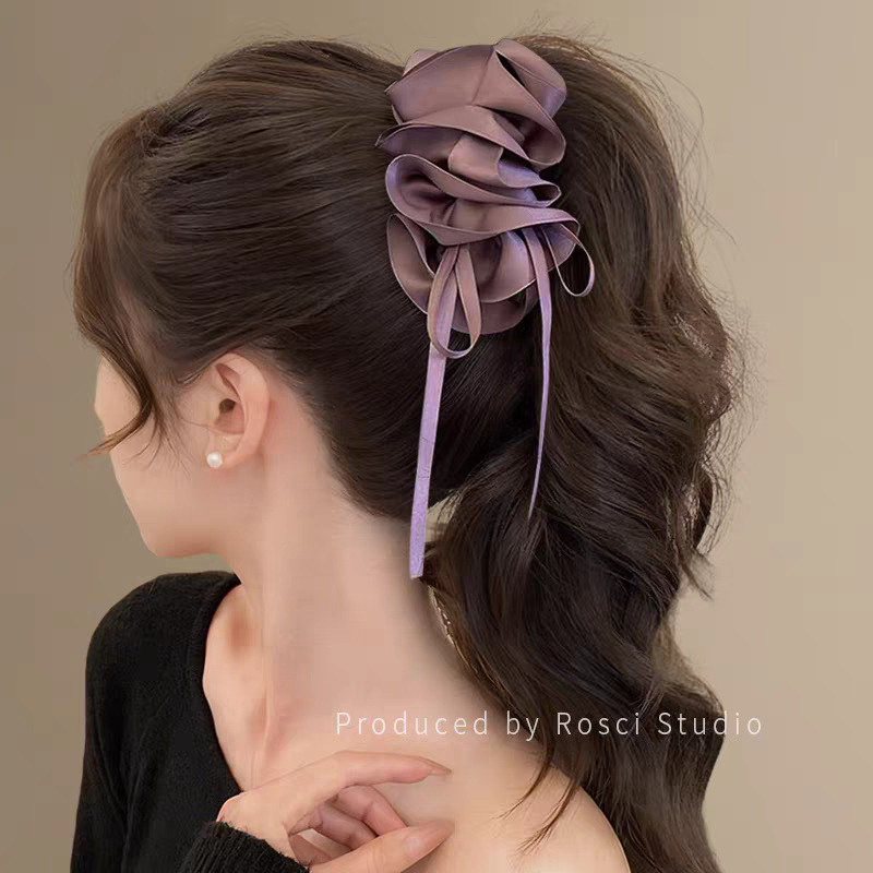 • 145#퍼플 새틴 플라워 바나나 클립-9.5cm