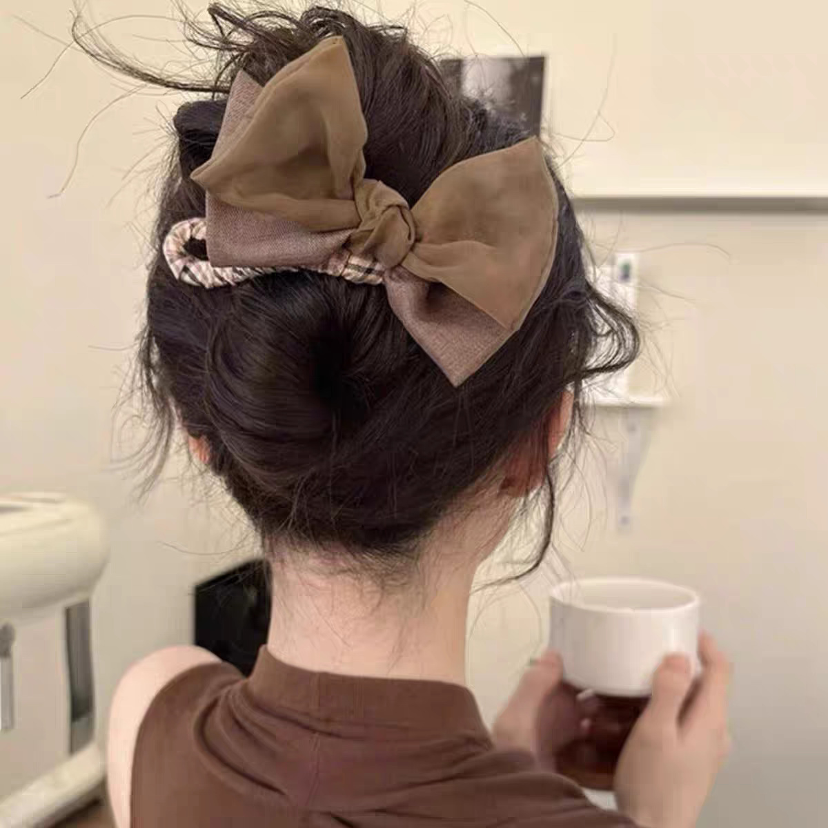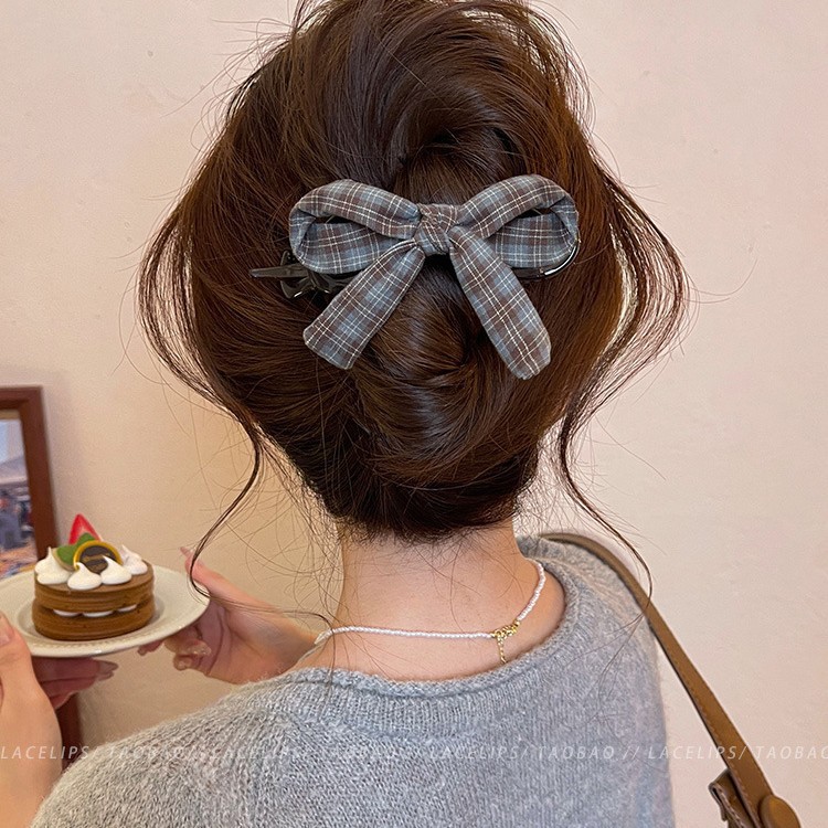 • 128#브라운 체크무늬 리본 바나나 클립-12.5cm