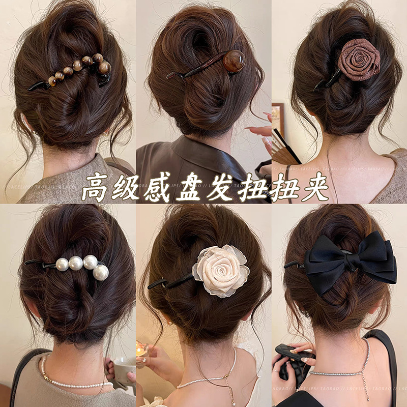 고급 로즈 플라워 트위스트 클립 여성의 2025 새로운 백 헤드 클립 그랩 클립 올 매치 헤어핀 헤어 액세서리스토어 가기