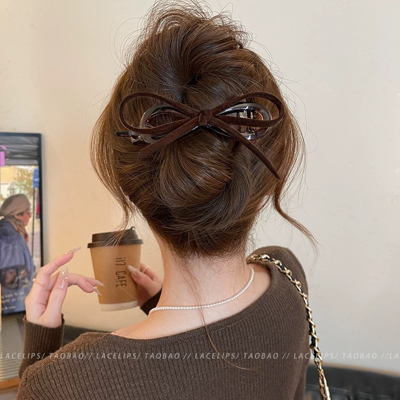 • 109#브라운 스웨이드 리본 트위스트 클립-10.5cm