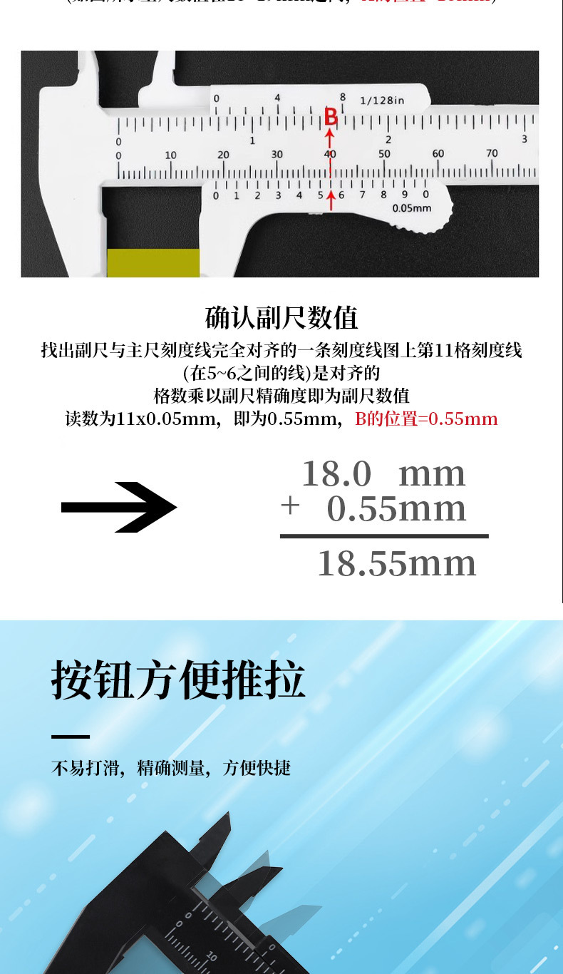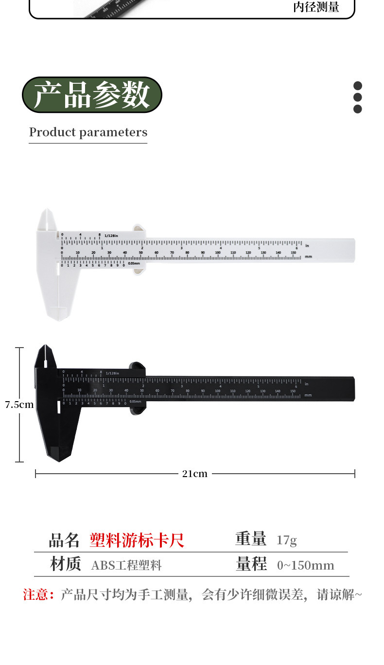 Vernier 캘리퍼 플라스틱 캘리퍼 플라스틱 캘리퍼 캘리퍼 학생 캘리퍼 실험 측정 도구 사양 0 -150m스토어 가기