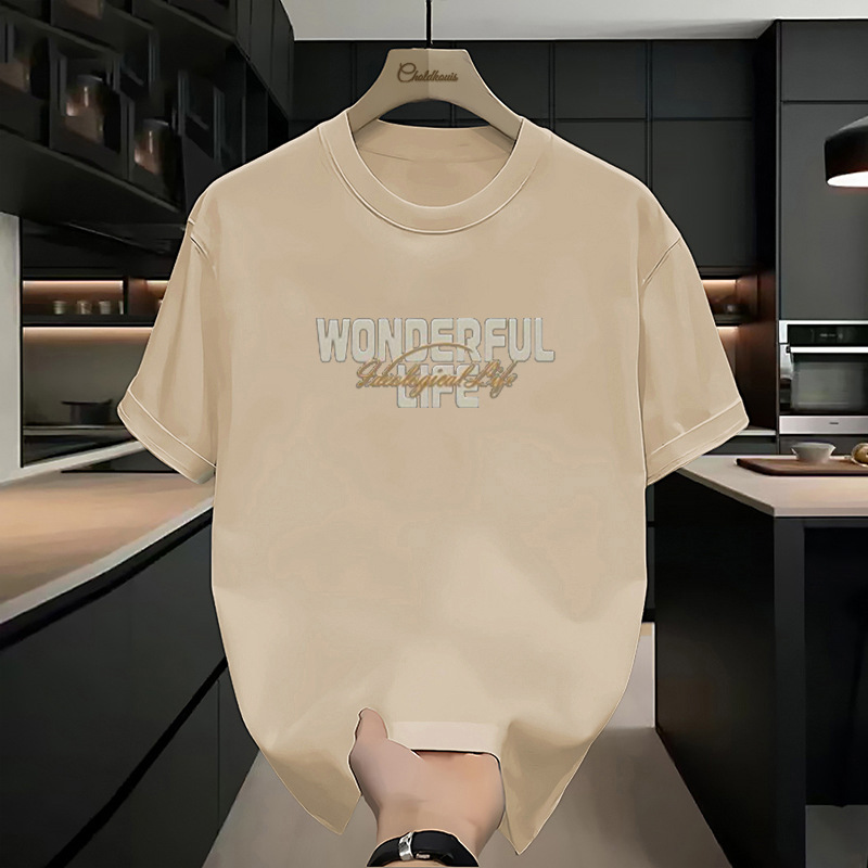 홍콩 스타일 일본 스타일 레트로 하이 스트리트 헤비 코튼 반팔 티셔츠 남자 여름 루즈 인 유행 잘 생긴 올매치