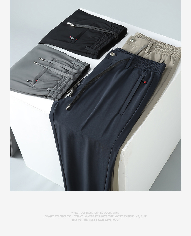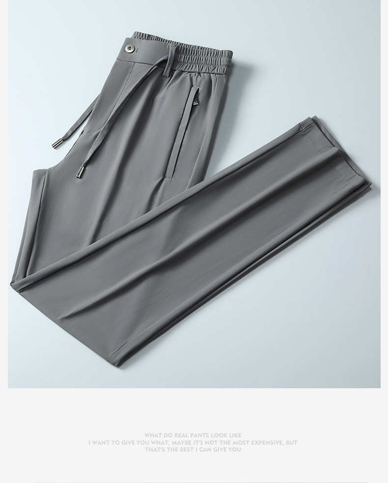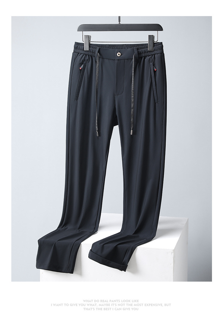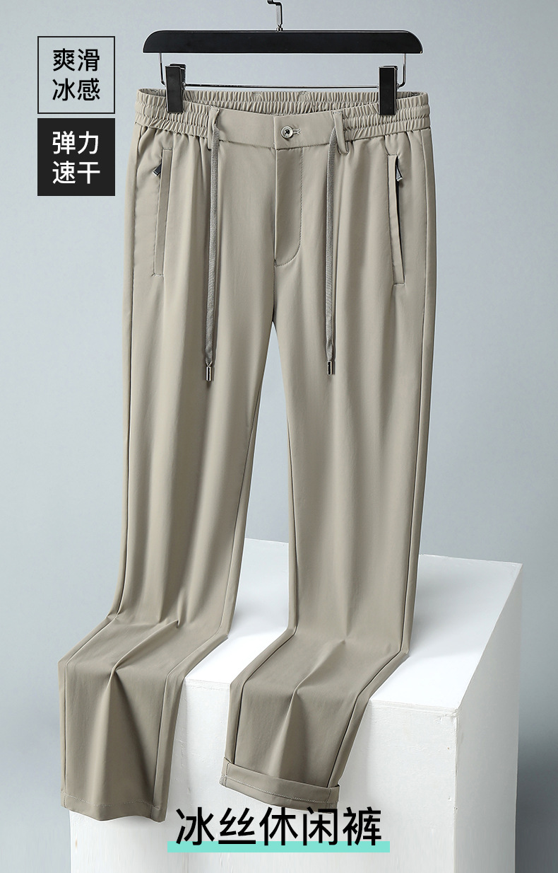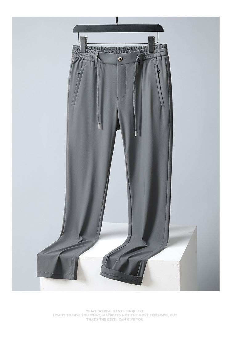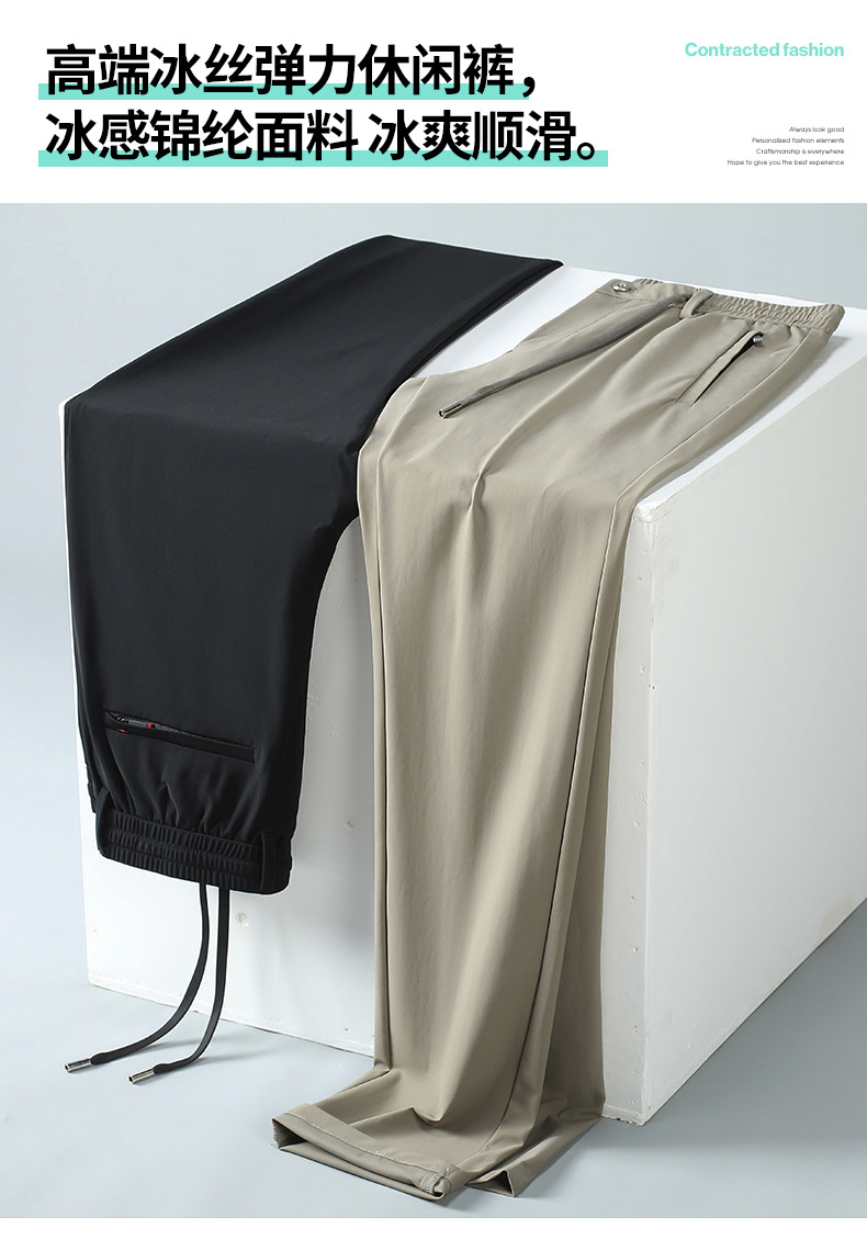 고급 남성용 아이스 실크 바지 여름 얇은 조명 비즈니스 느슨한 스트레이트 바지 통기성 조명 럭셔리 빠른 건조 캐주얼 바지