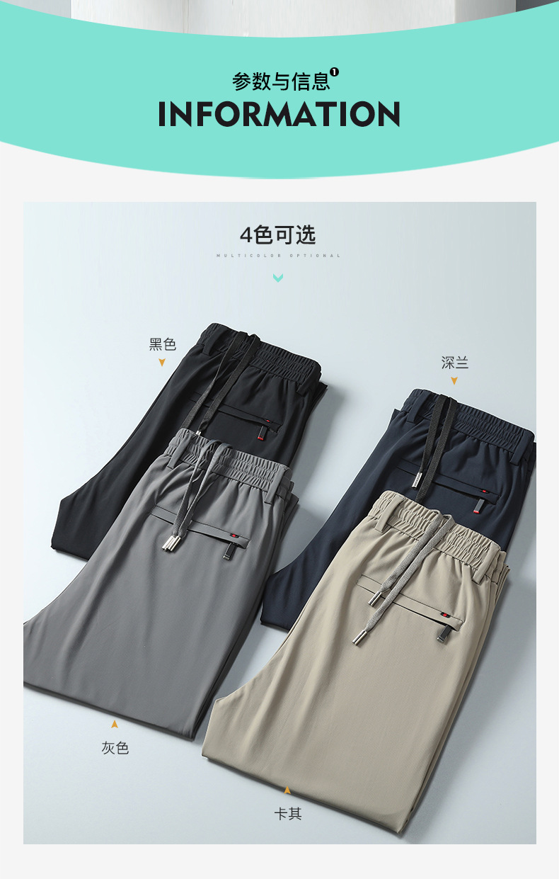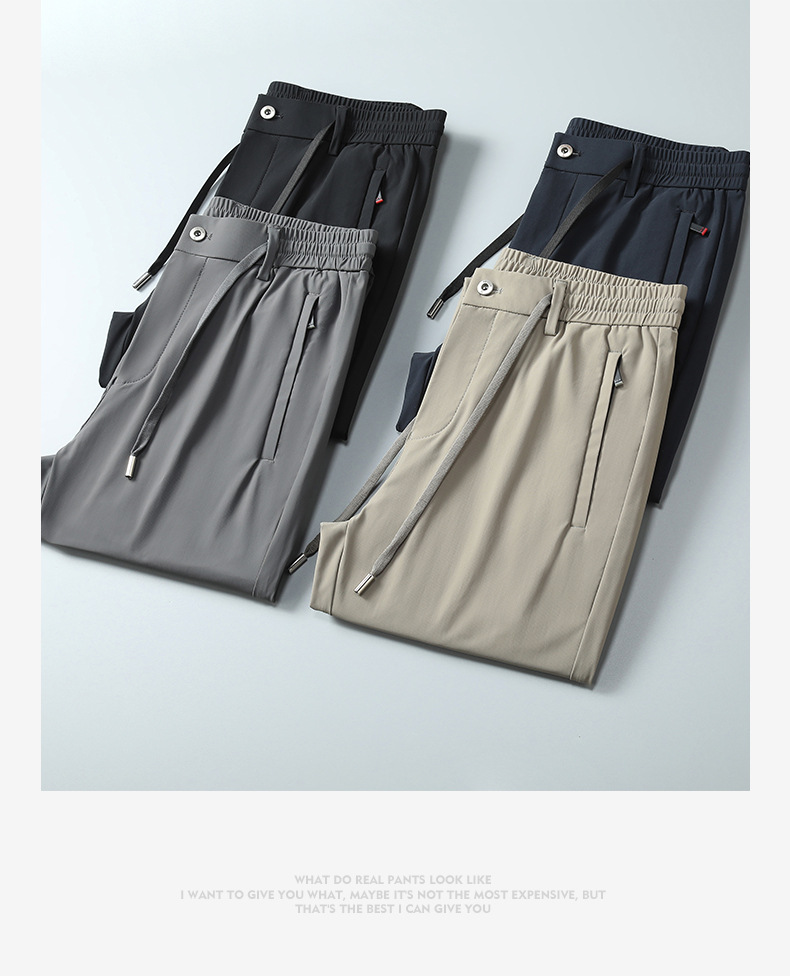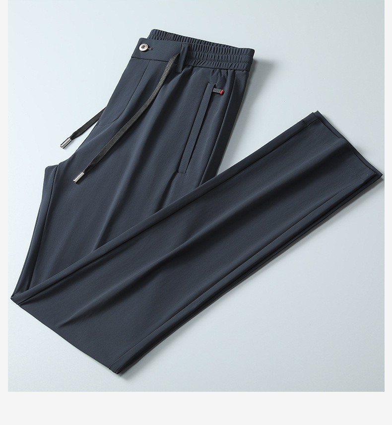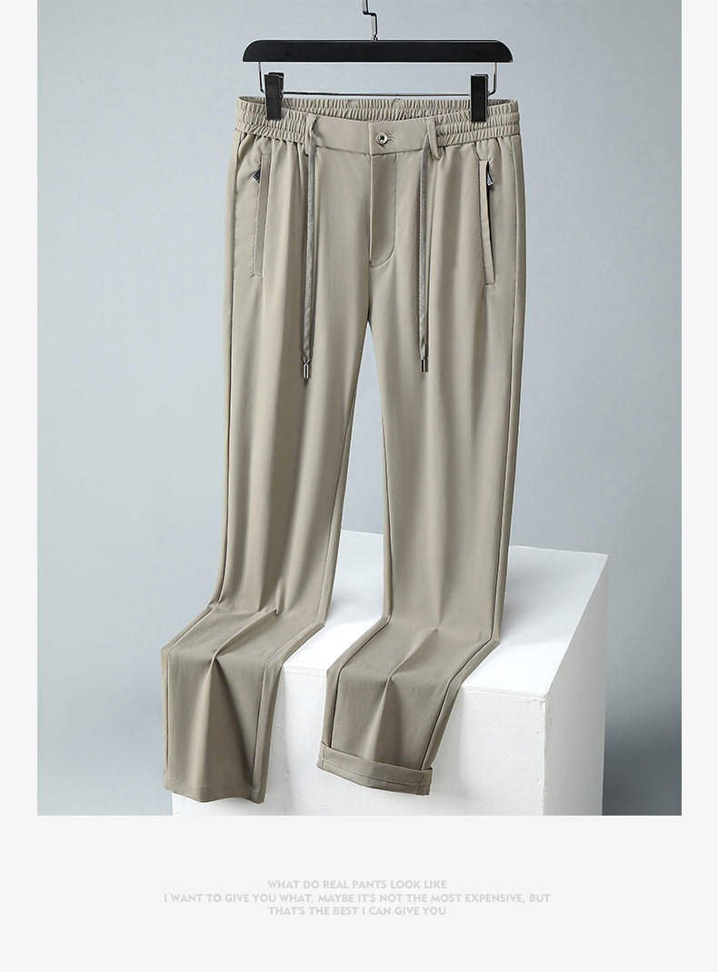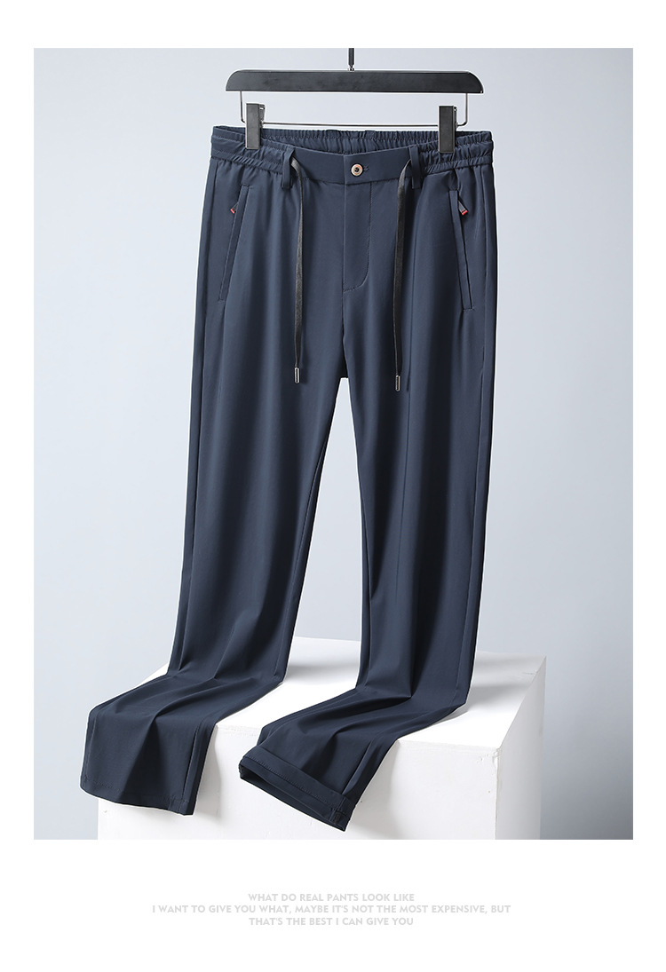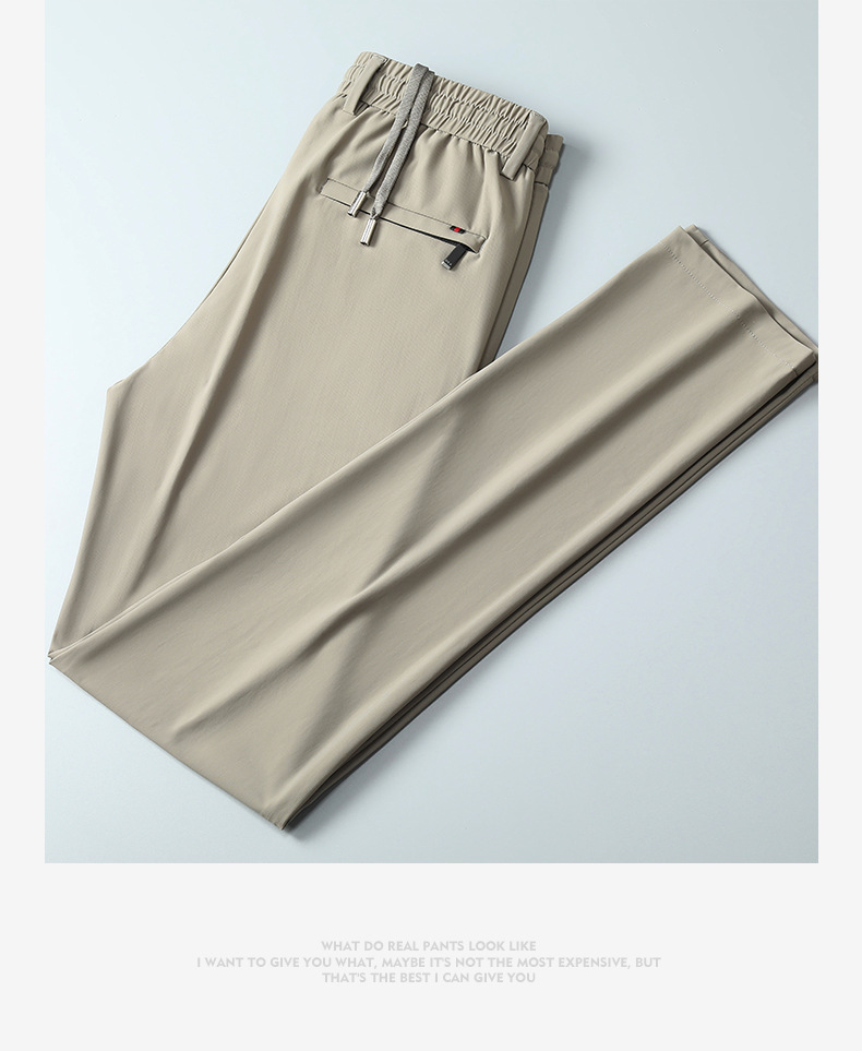 고급 남성용 아이스 실크 바지 여름 얇은 조명 비즈니스 느슨한 스트레이트 바지 통기성 조명 럭셔리 빠른 건조 캐주얼 바지