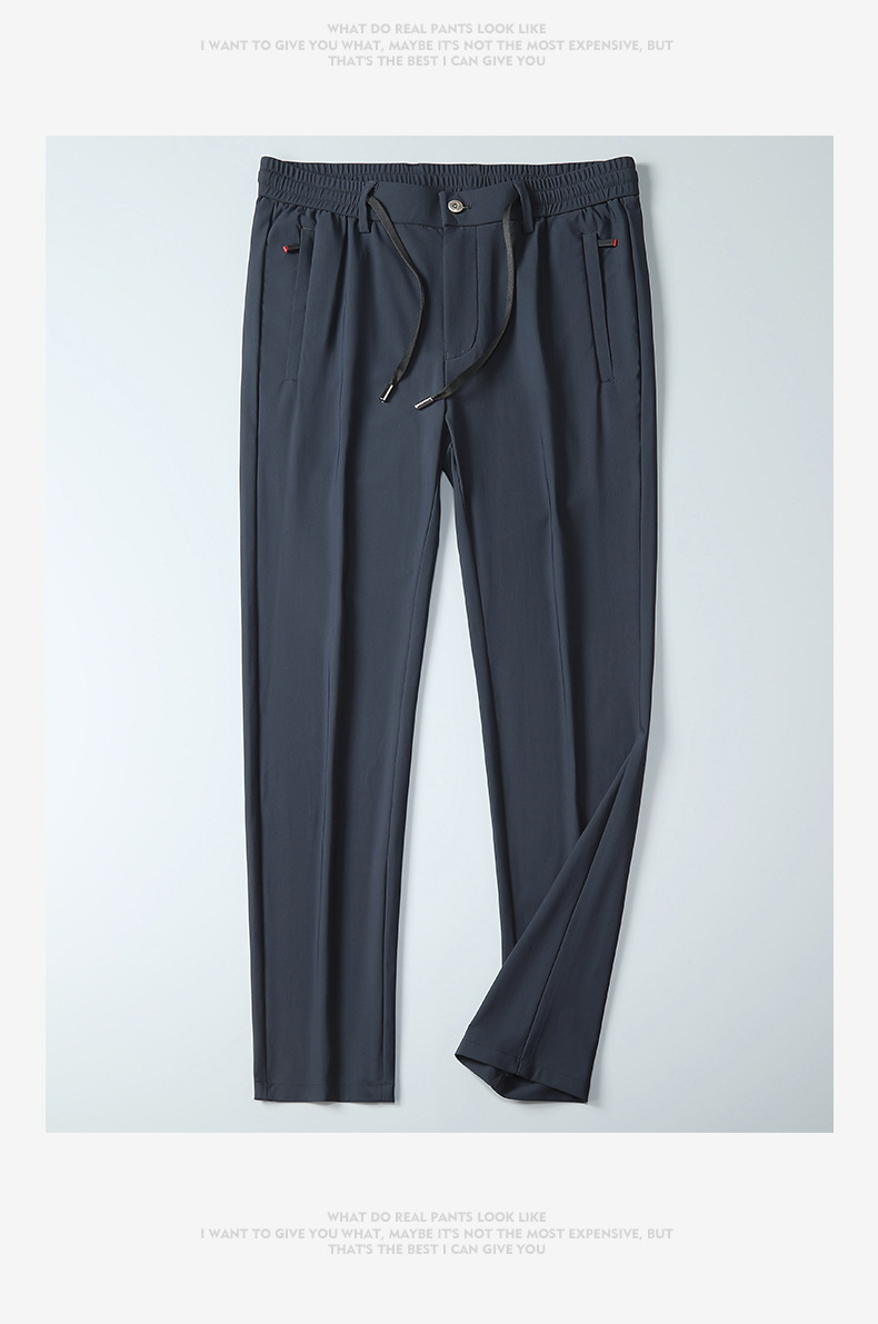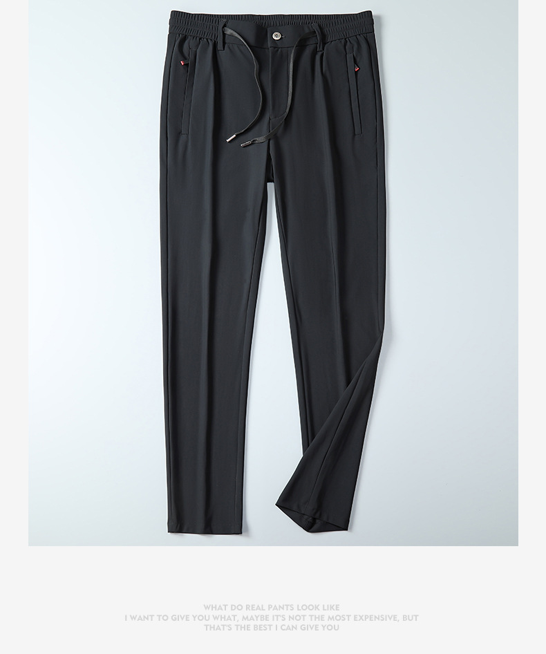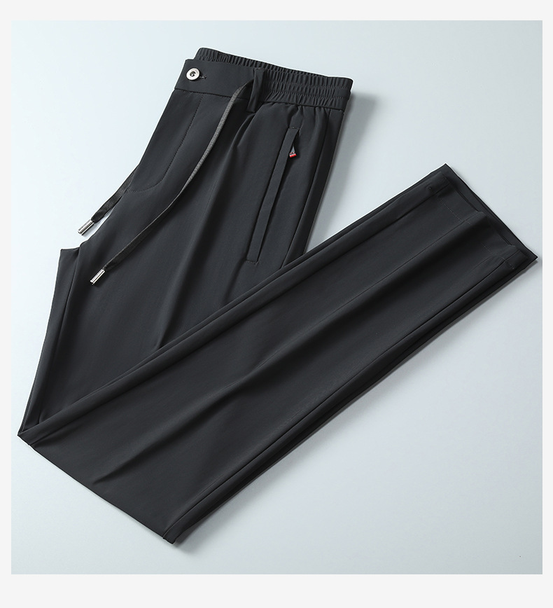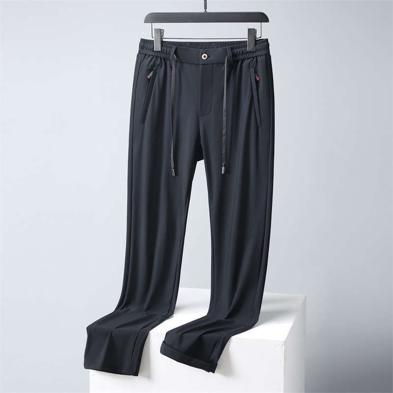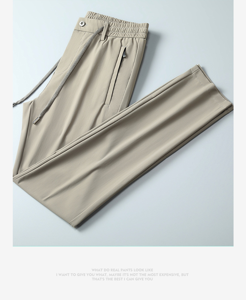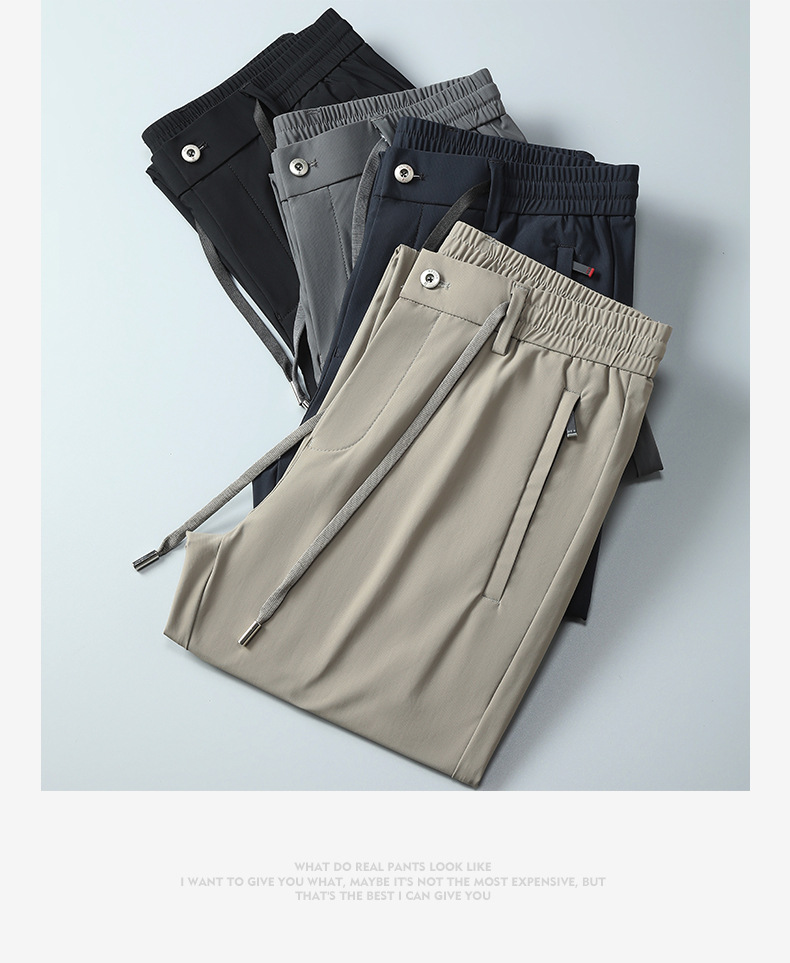 고급 남성용 아이스 실크 바지 여름 얇은 조명 비즈니스 느슨한 스트레이트 바지 통기성 조명 럭셔리 빠른 건조 캐주얼 바지