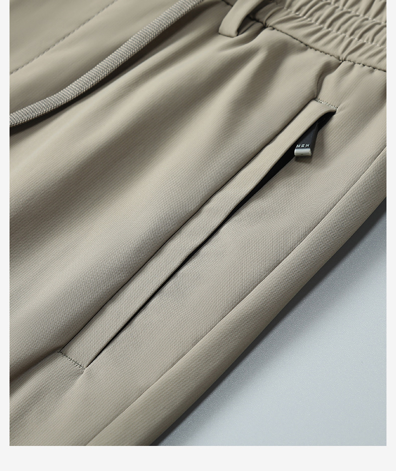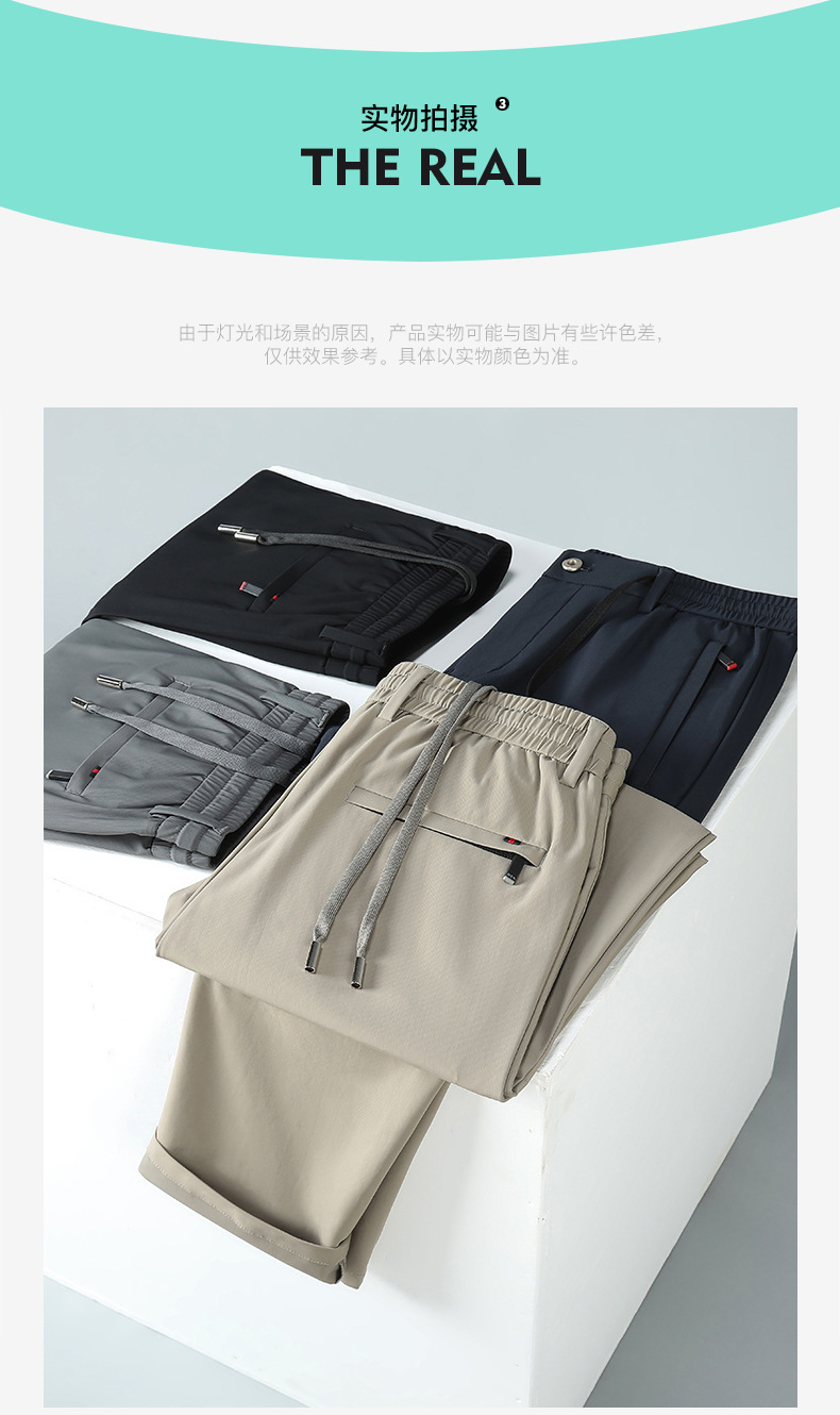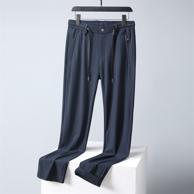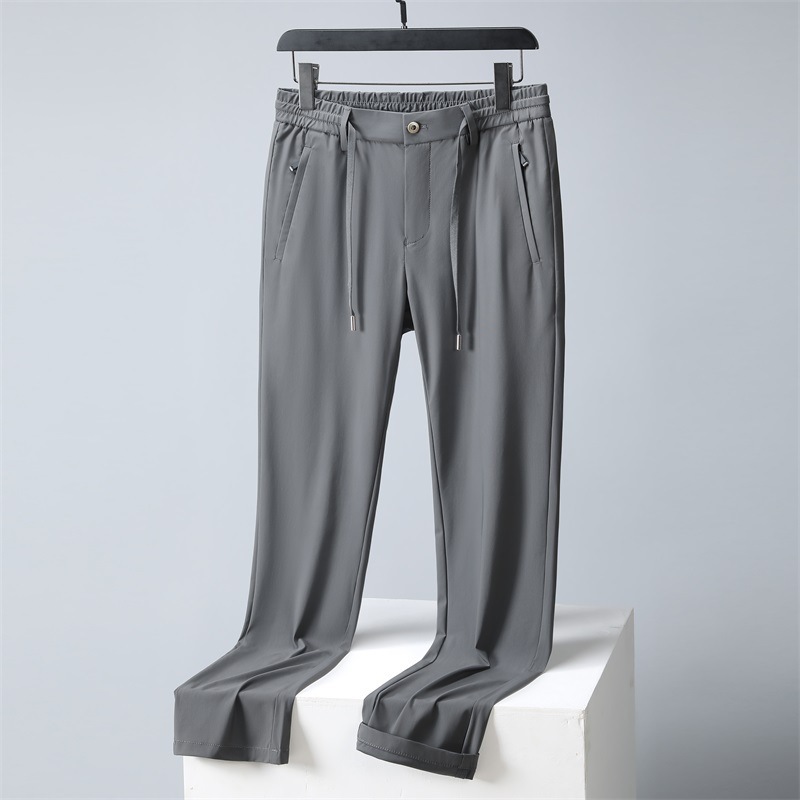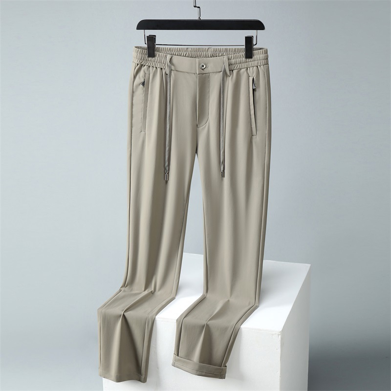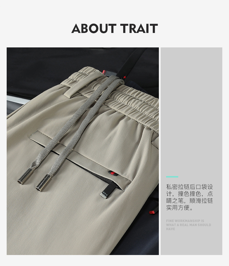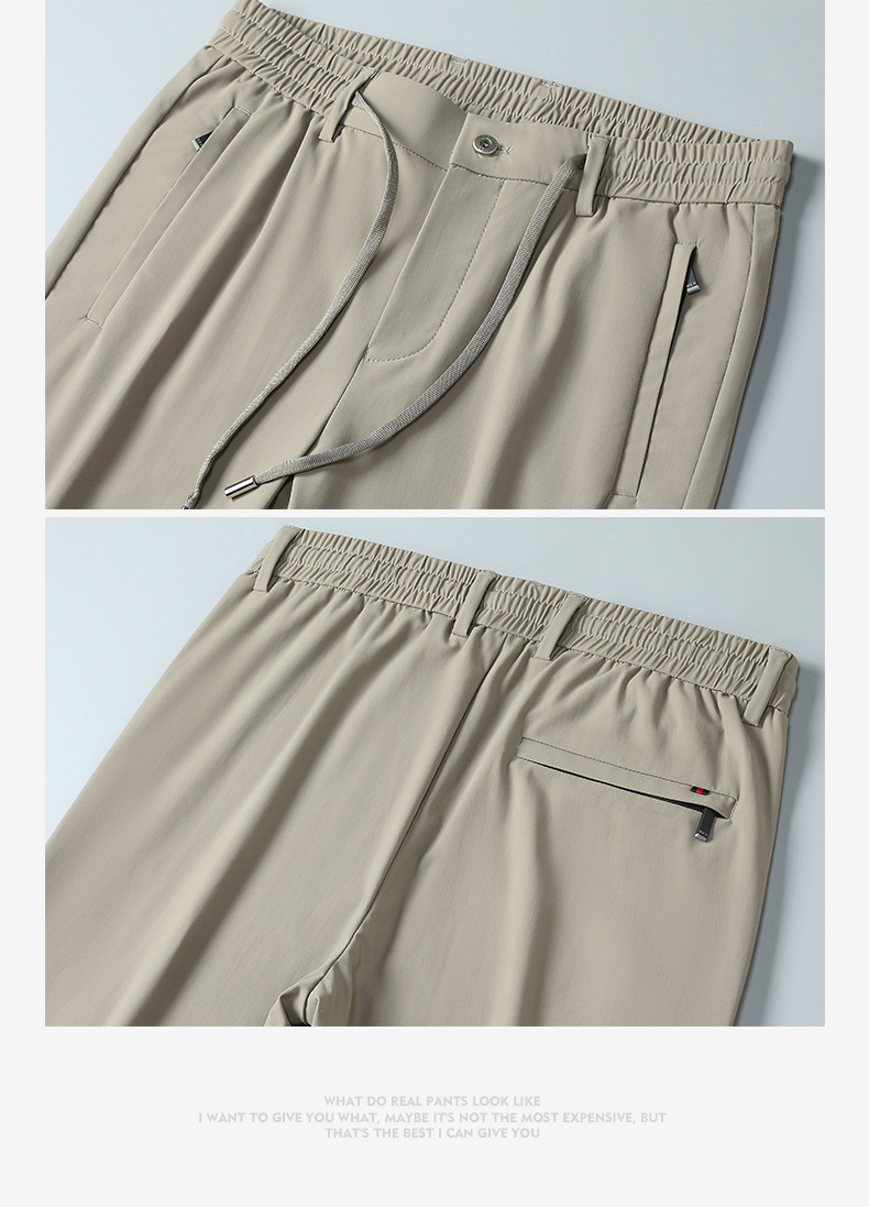 고급 남성용 아이스 실크 바지 여름 얇은 조명 비즈니스 느슨한 스트레이트 바지 통기성 조명 럭셔리 빠른 건조 캐주얼 바지