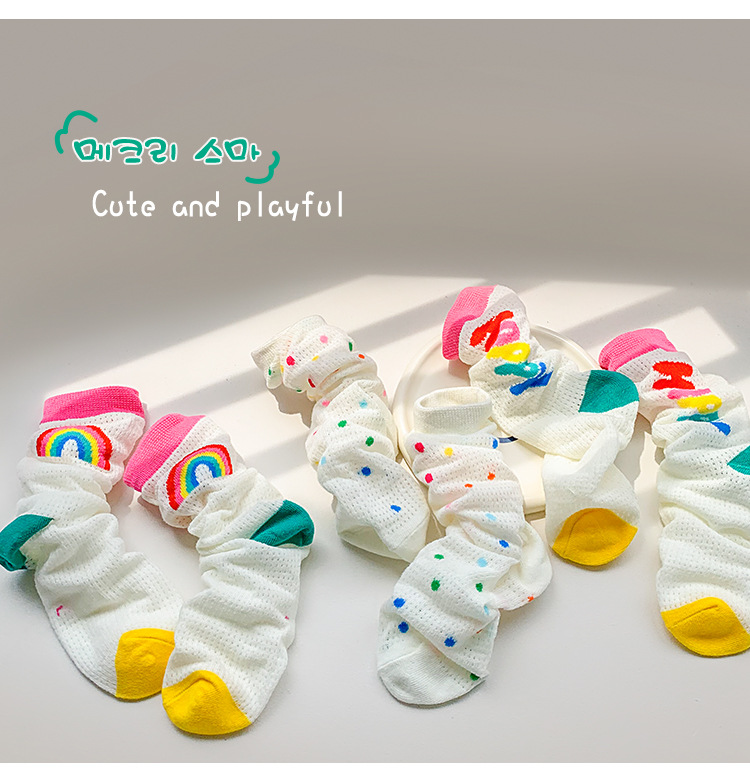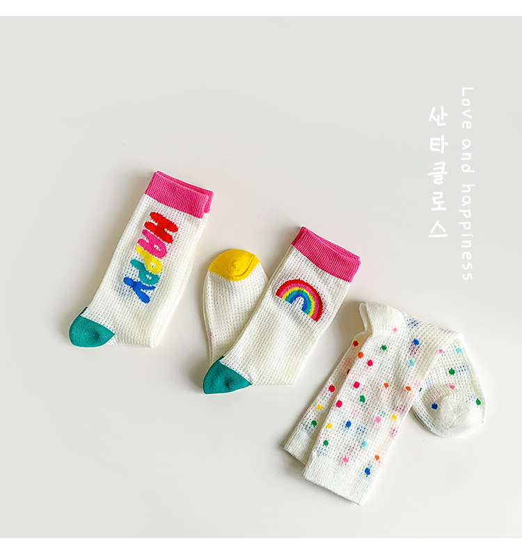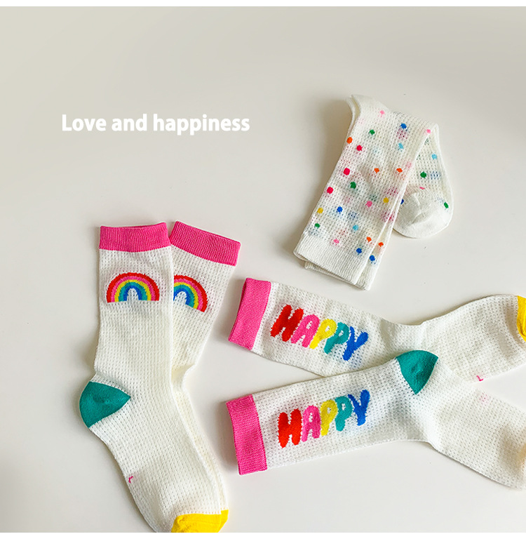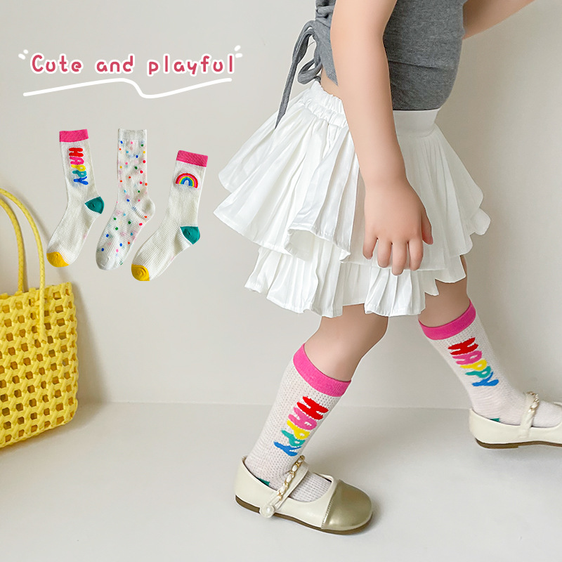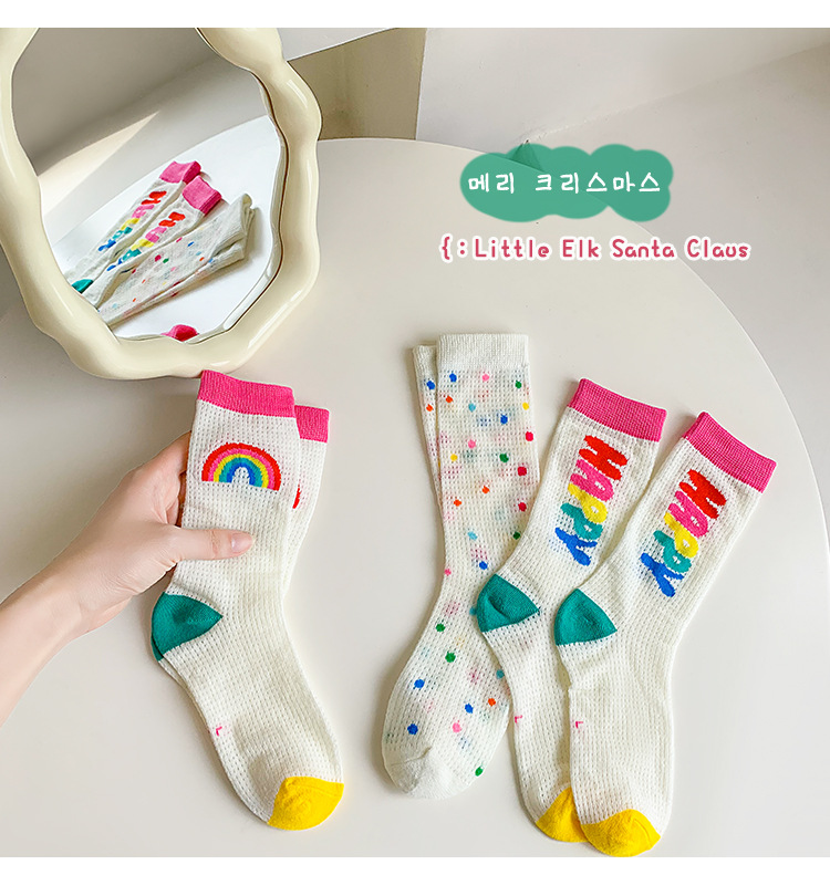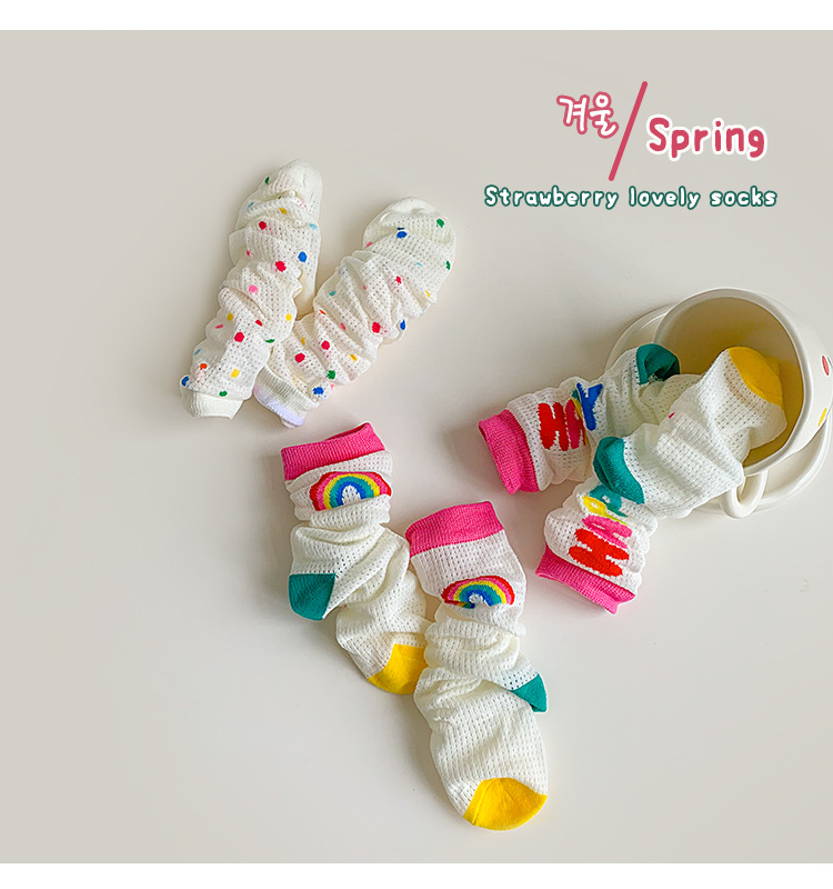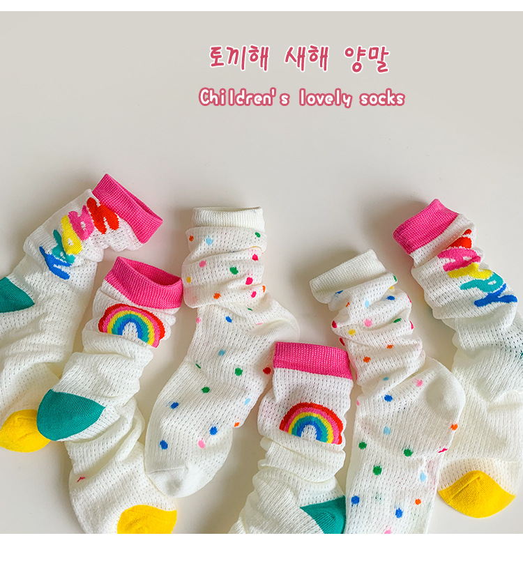 어린이 조수 양말 도매 2025 봄과 여름 얇은 무지개 메쉬 양말 작은 웨이브 포인트 놀이 공원 소녀 양말