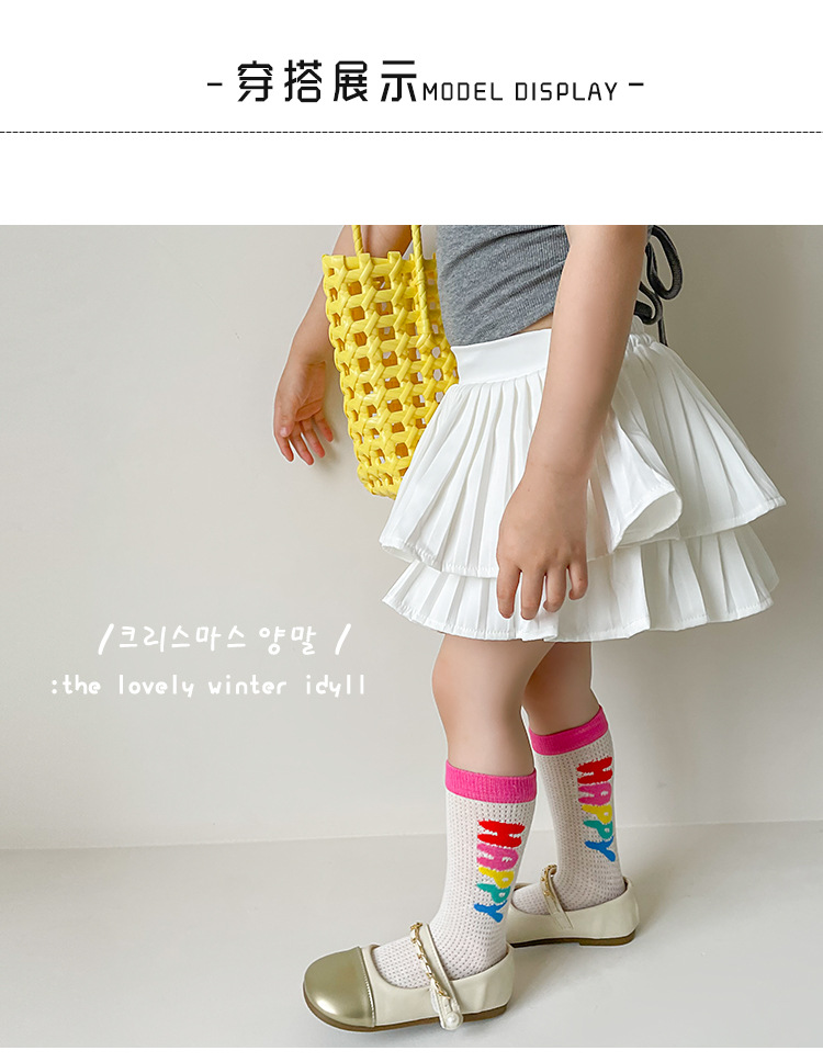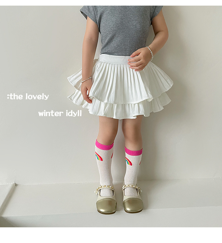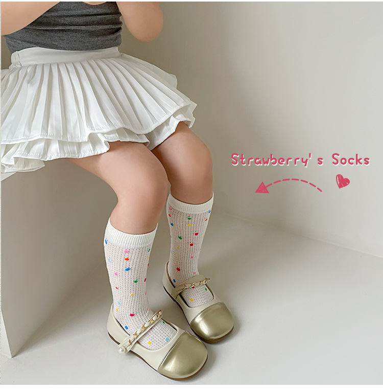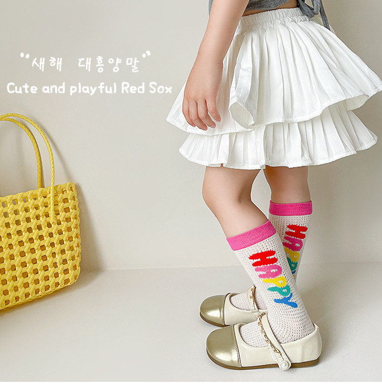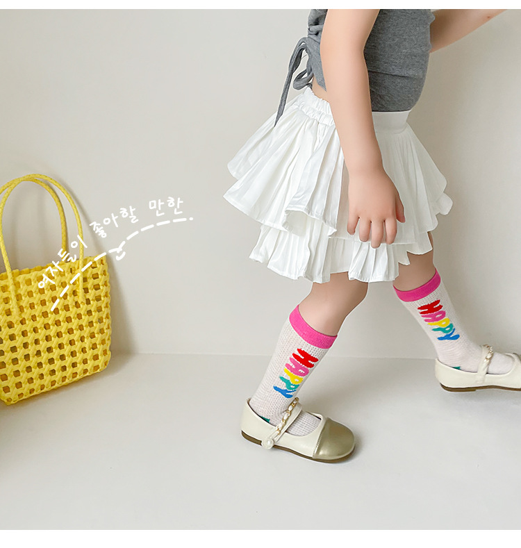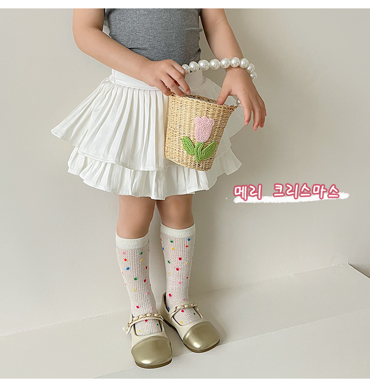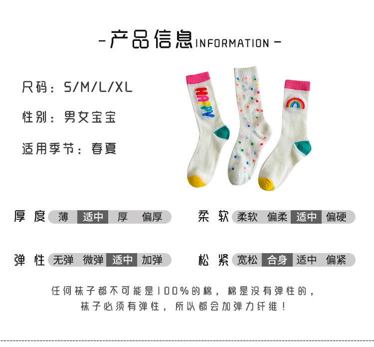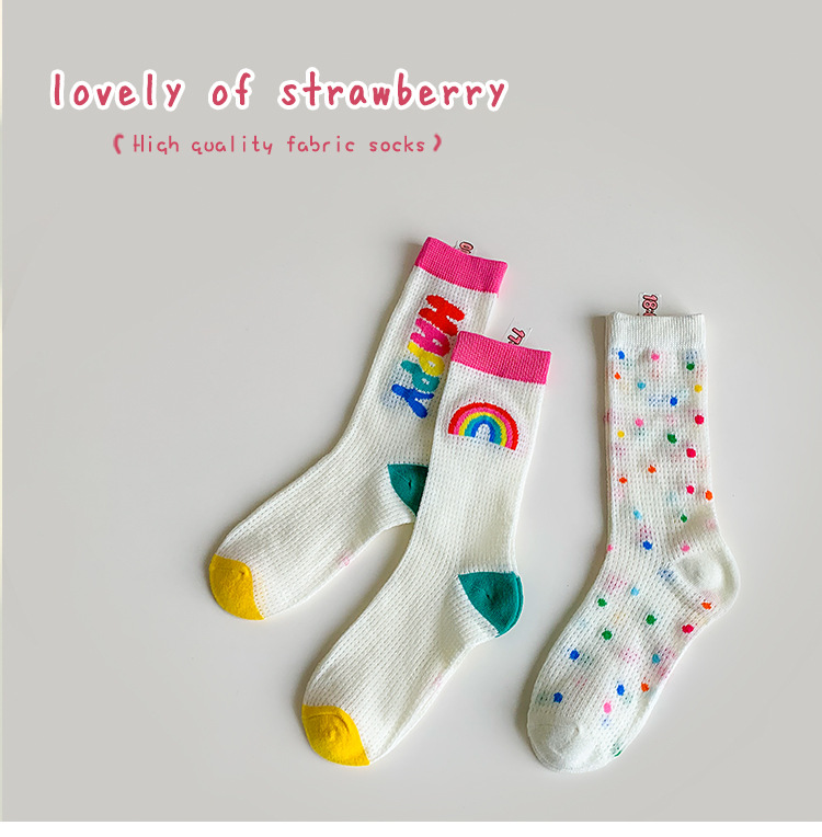 어린이 조수 양말 도매 2025 봄과 여름 얇은 무지개 메쉬 양말 작은 웨이브 포인트 놀이 공원 소녀 양말