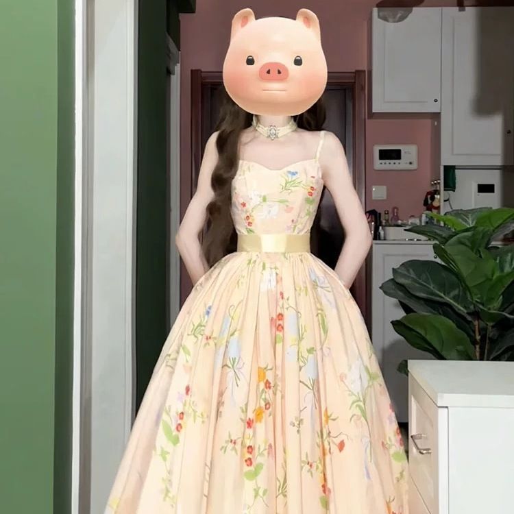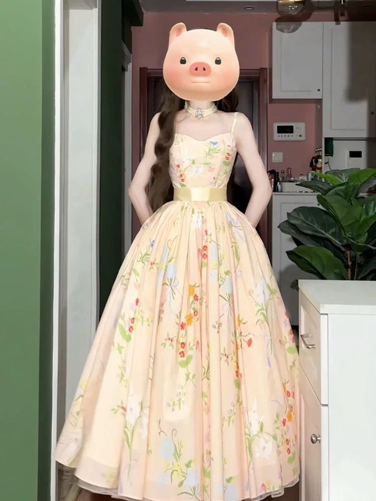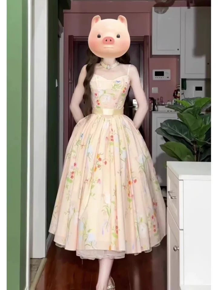 프랑스 스타일 휴일 우아한 단단한 허리 슬링 원피스 소녀 학생 달콤한 꽃 A-라인 스커트 여름 새로운 긴 치마스토어 가기