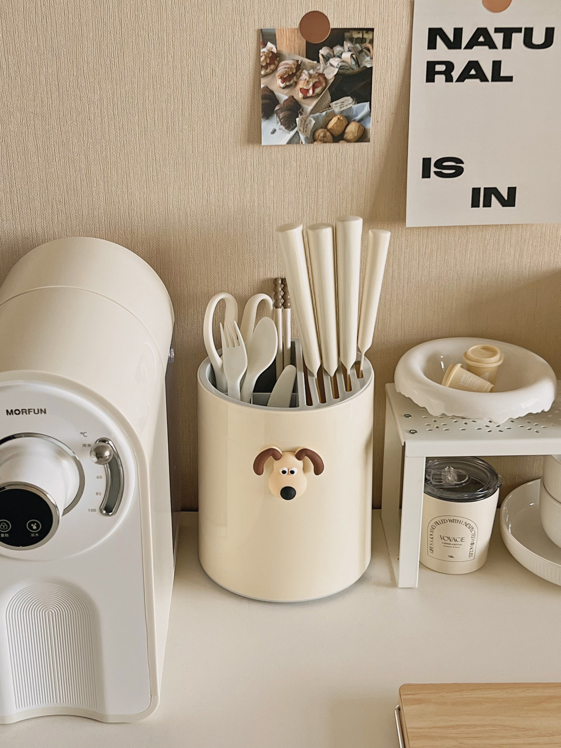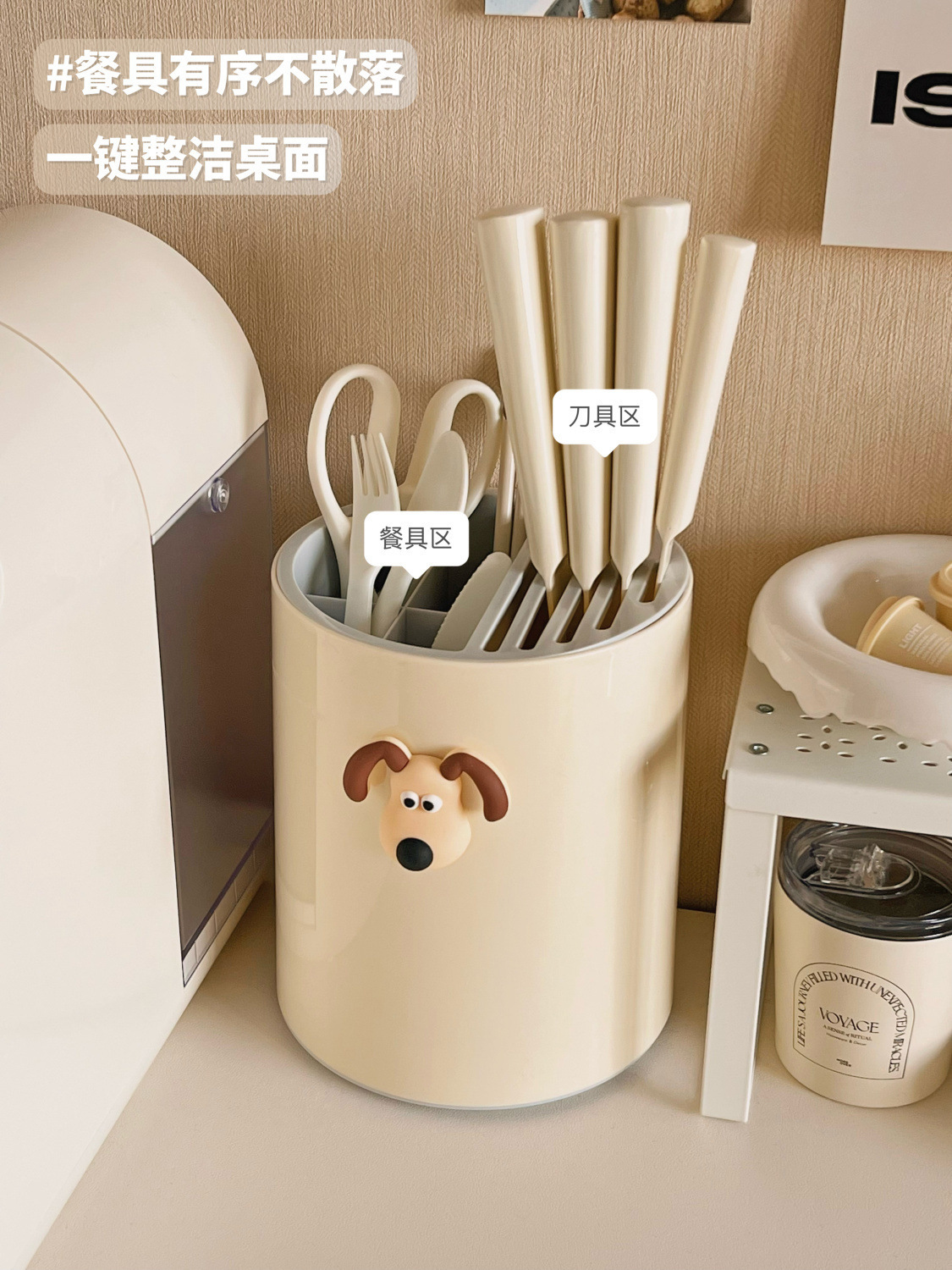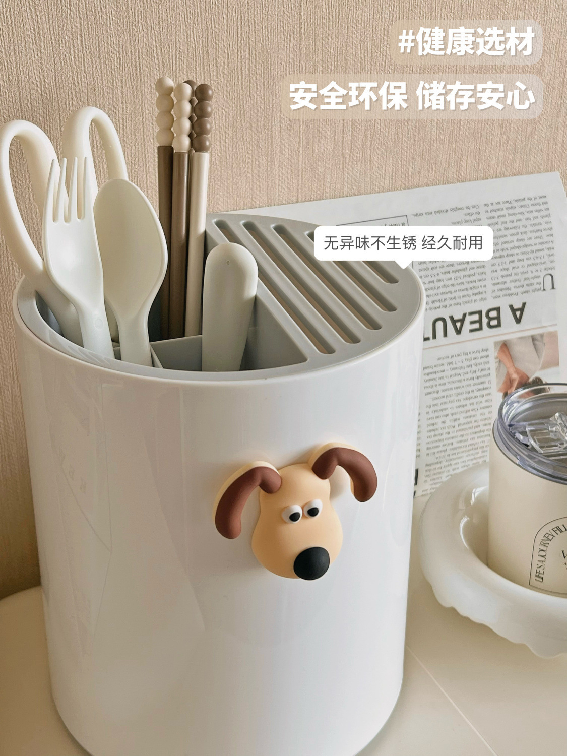 • 칼꽂이 + 젓가락통 [배수형] 유백색 + 강아지 스티커