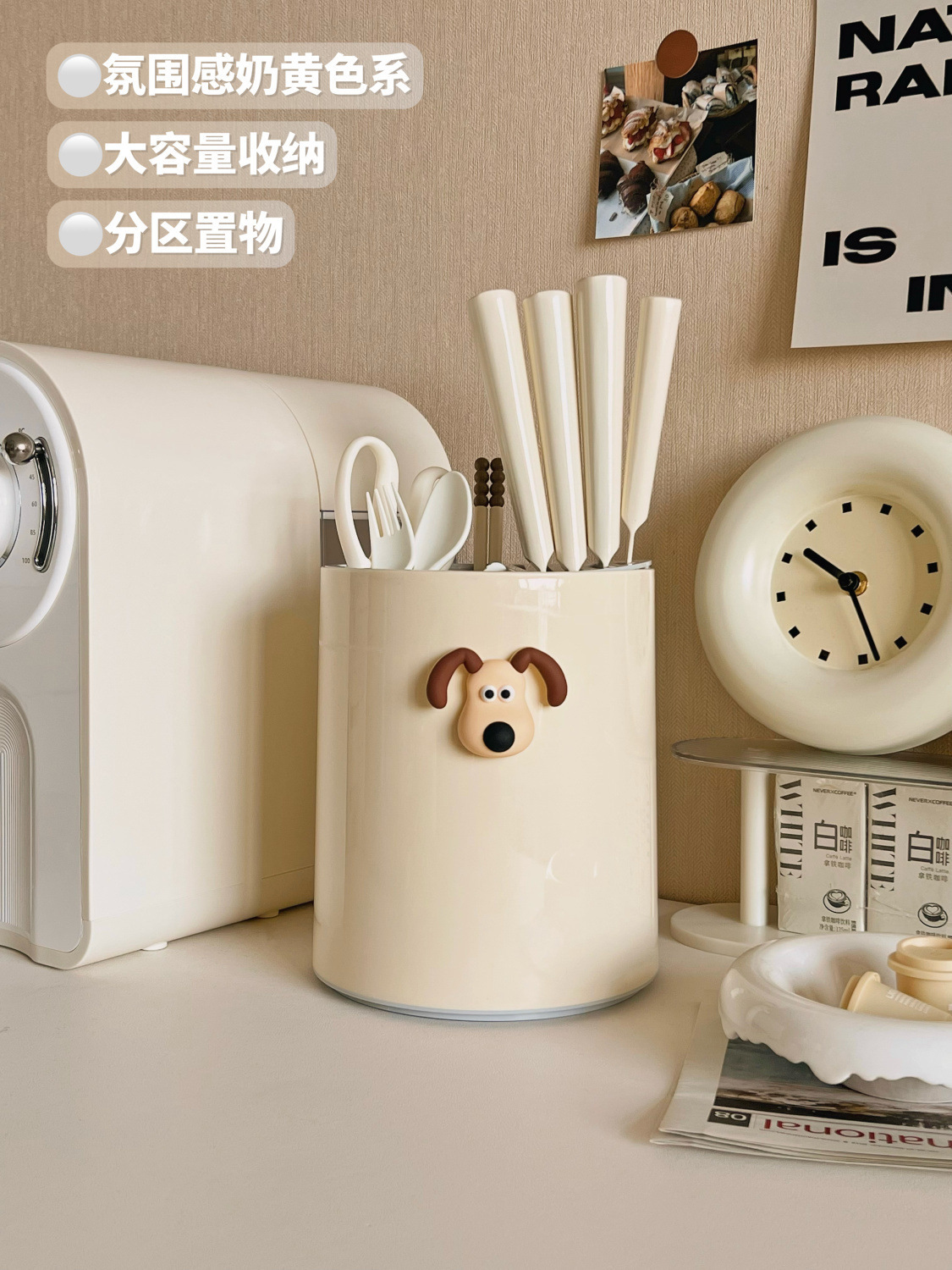 • 칼꽂이 + 젓가락통 [배수 가능] 커스터드 + 강아지 스티커