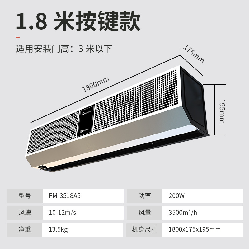 西奥多风幕机不锈钢商用轻音空气幕1.8米门头餐饮店冷库风帘机