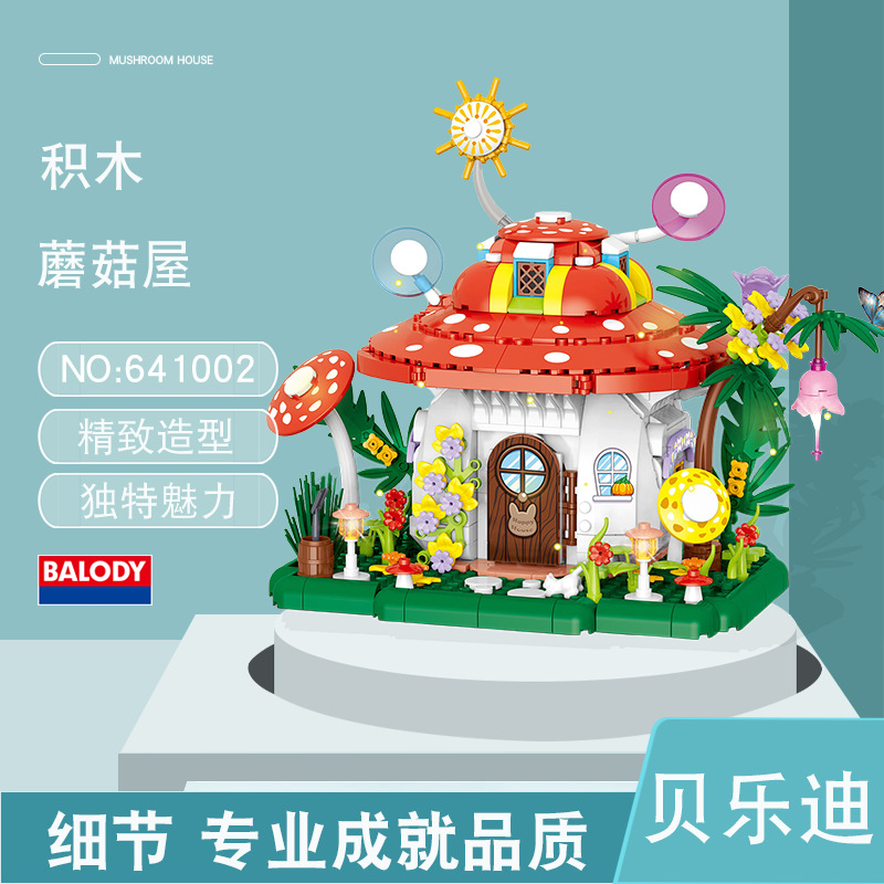 Zhegao 641002-4 Pandora World 미니 버섯 하우스 Puyi 빌딩 블록 창의적인 장난감 조립 국경 독점스토어 가기