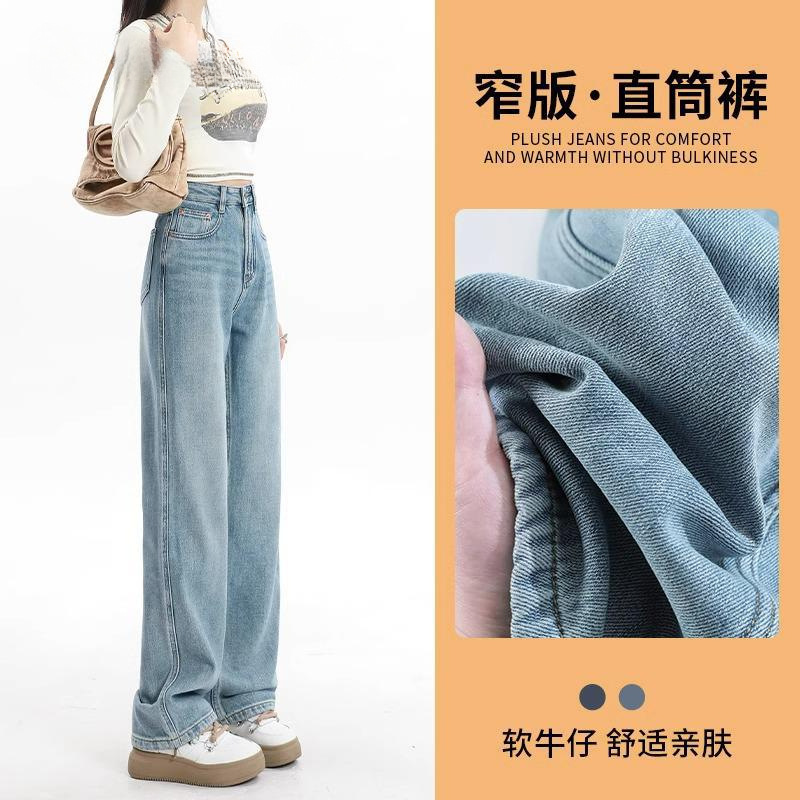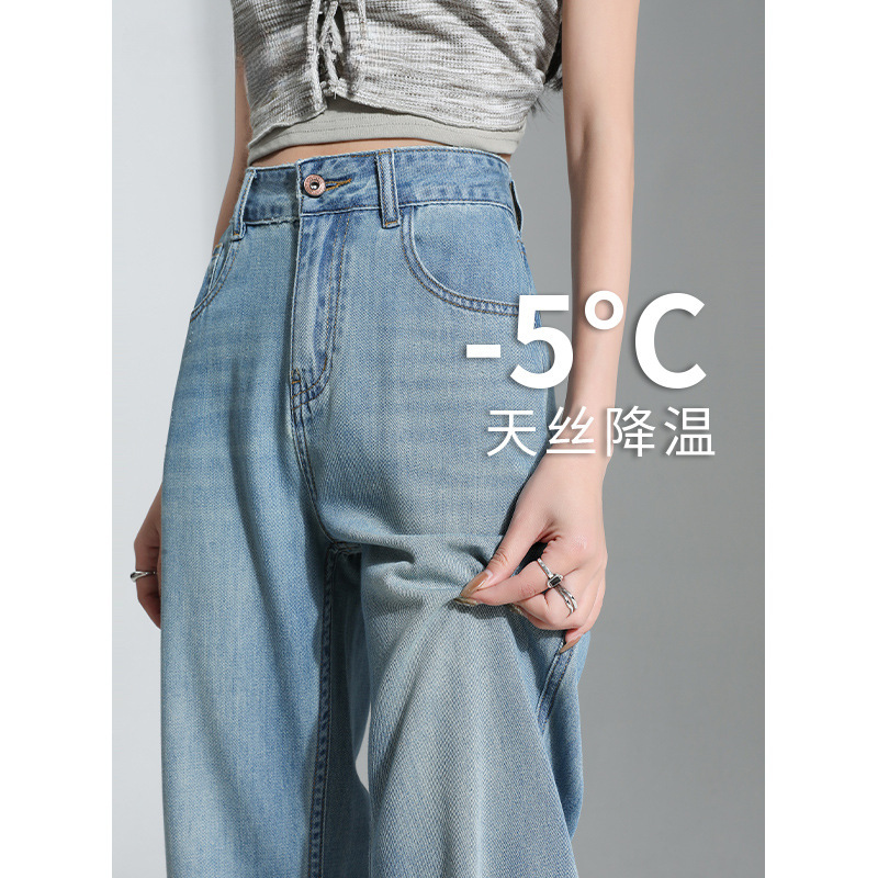 텐셀 청바지 여자 2025 여름 얇은 작은 봄과 가을 새로운 시원한 얼음 실크 좁은 넓은 다리 바지