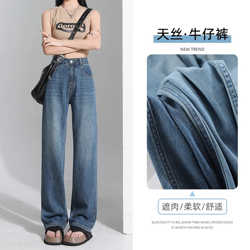 텐셀 청바지 여자 2025 여름 얇은 작은 봄과 가을 새로운 시원한 얼음 실크 좁은 넓은 다리 바지스토어 가기