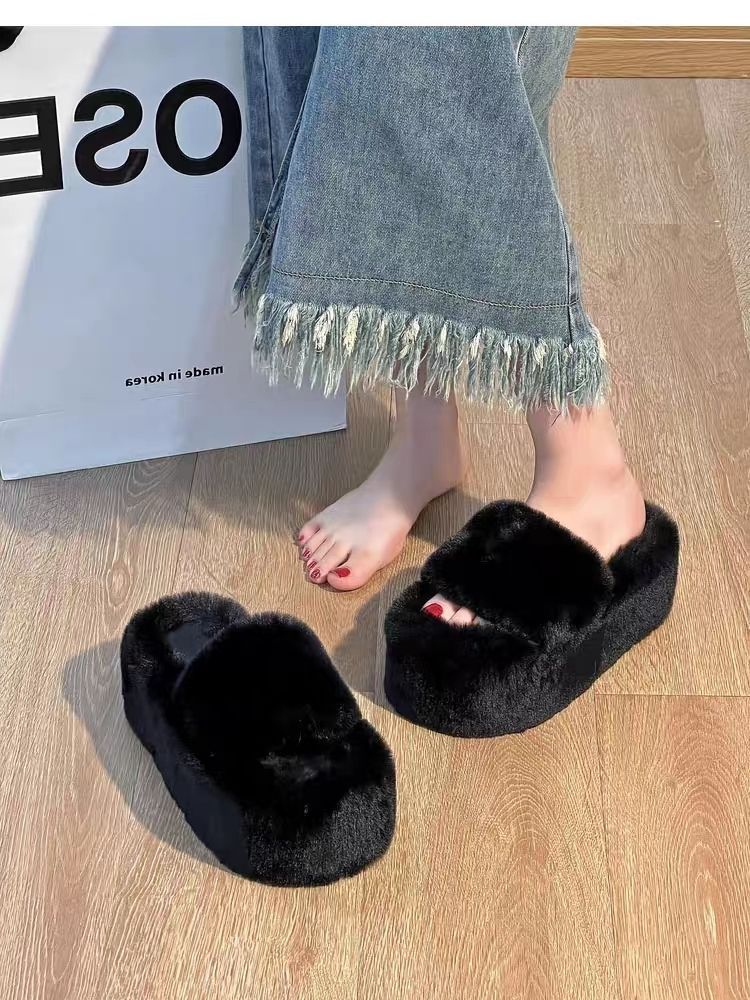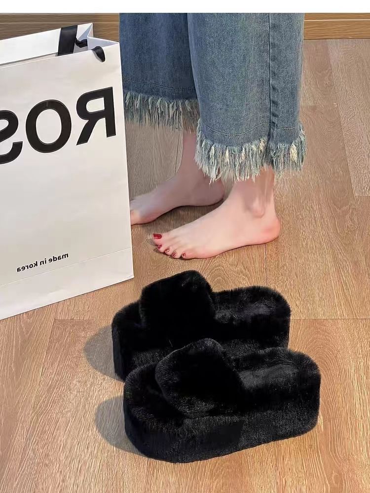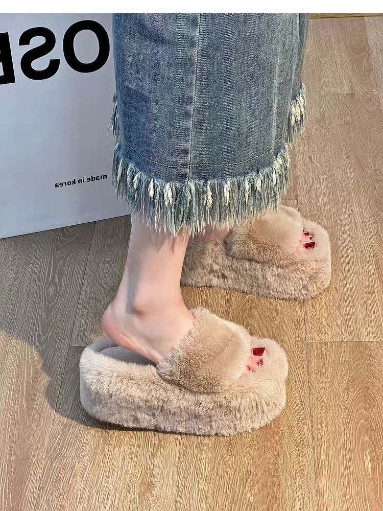 하늘 높이 8cm 머핀이 증가한 마오 마오 마오 신발 기질 면화 여성의 2023 가을과 겨울 모피 한 단어 끌기스토어 가기