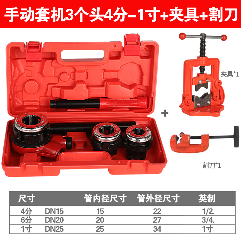 • 수동 스레딩 기계(4분 ~ 1인치) 3개 헤드 + 커터 + 클램프