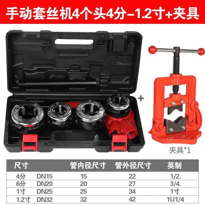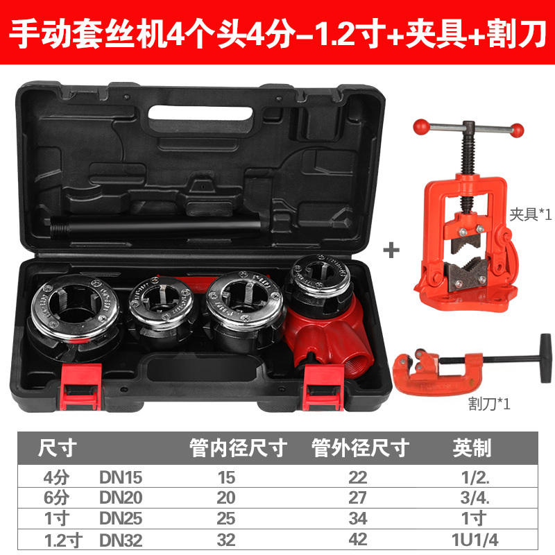 • 수동 스레딩 기계(4분 ~ 1.2인치) 헤드 4개 + 커터 + 클램프