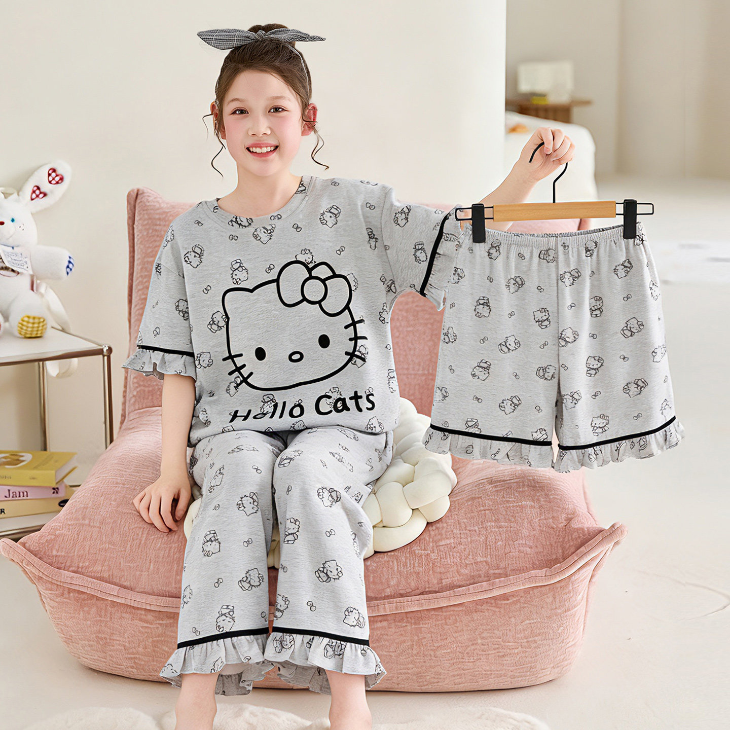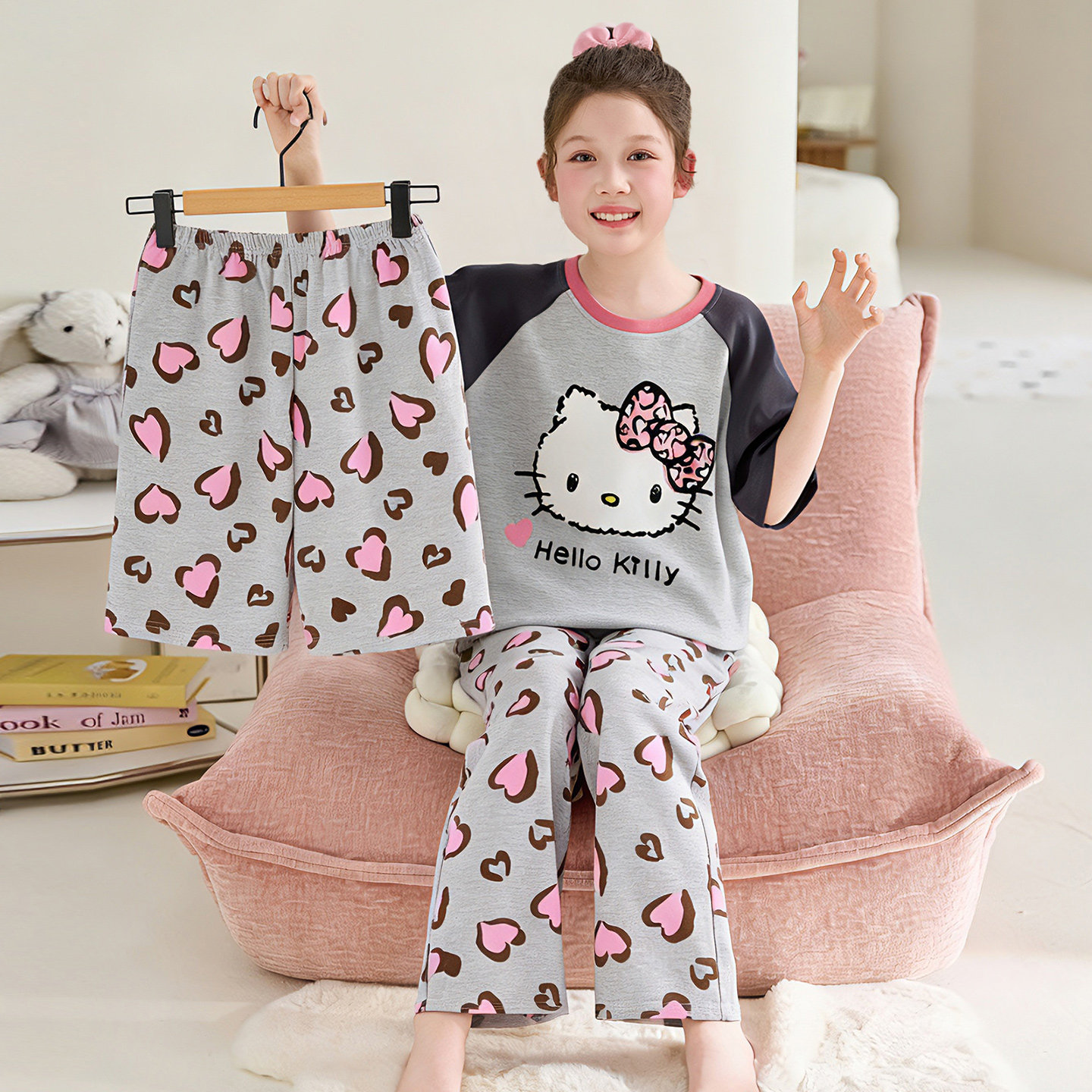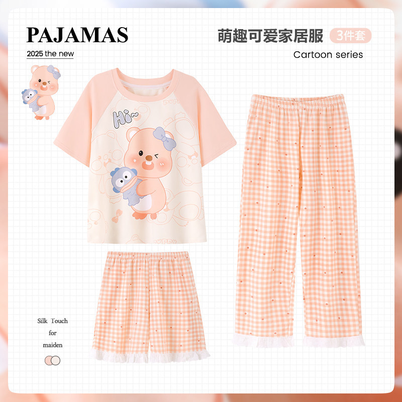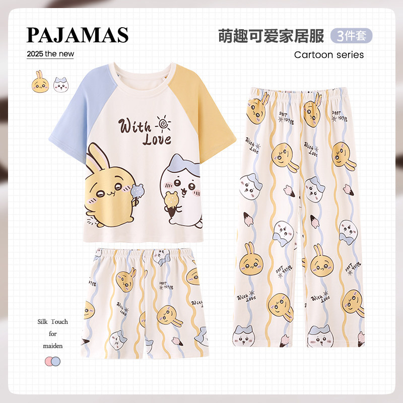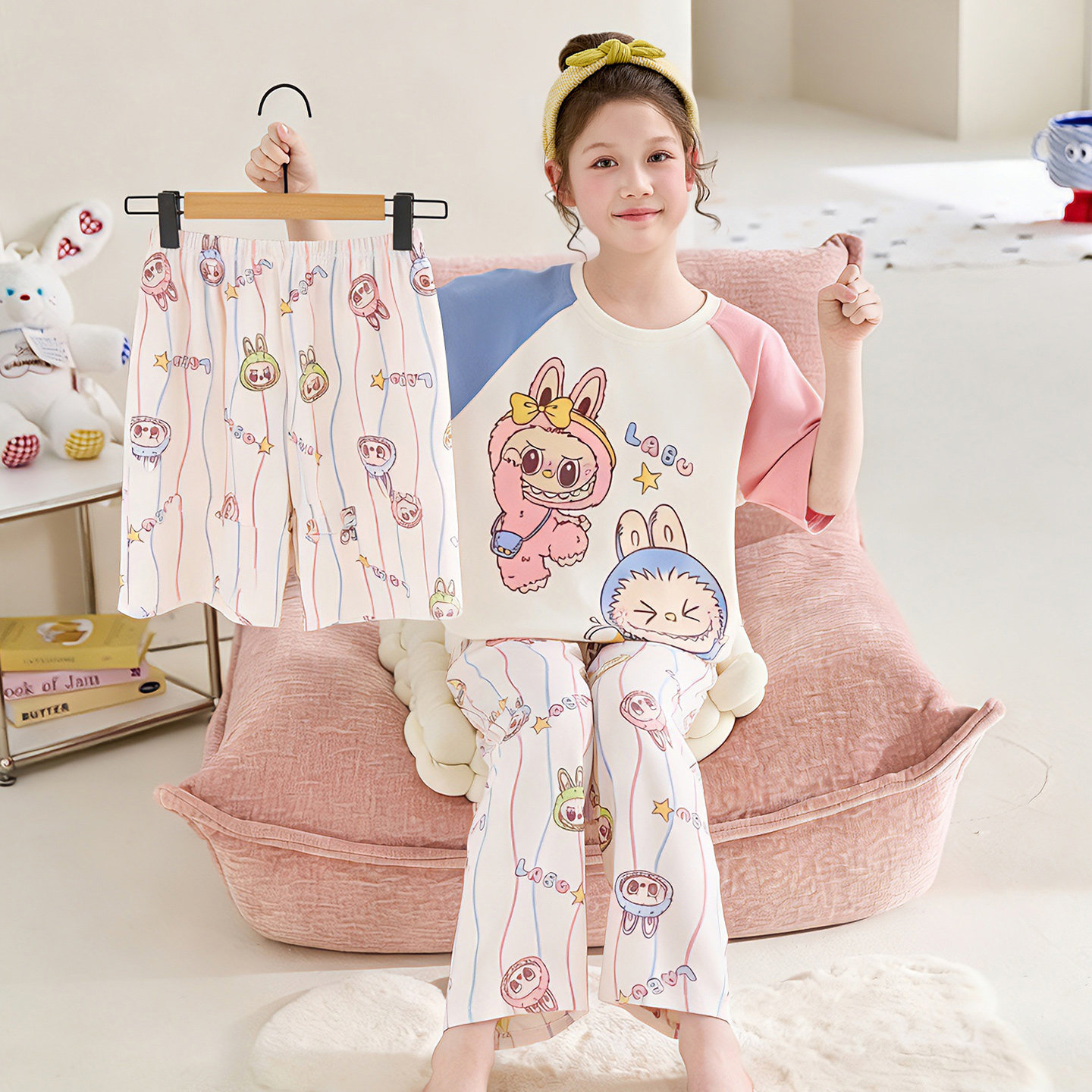 여아 잠옷 3종 세트 어린이 여름 순면 얇은 반팔 긴바지 여름 스타일 여아 홈웨어 2026 신상
