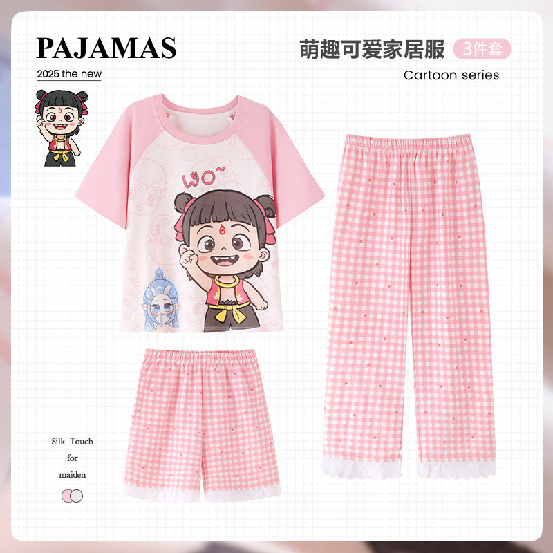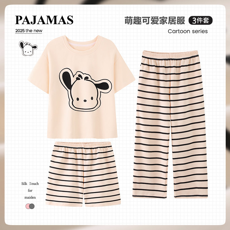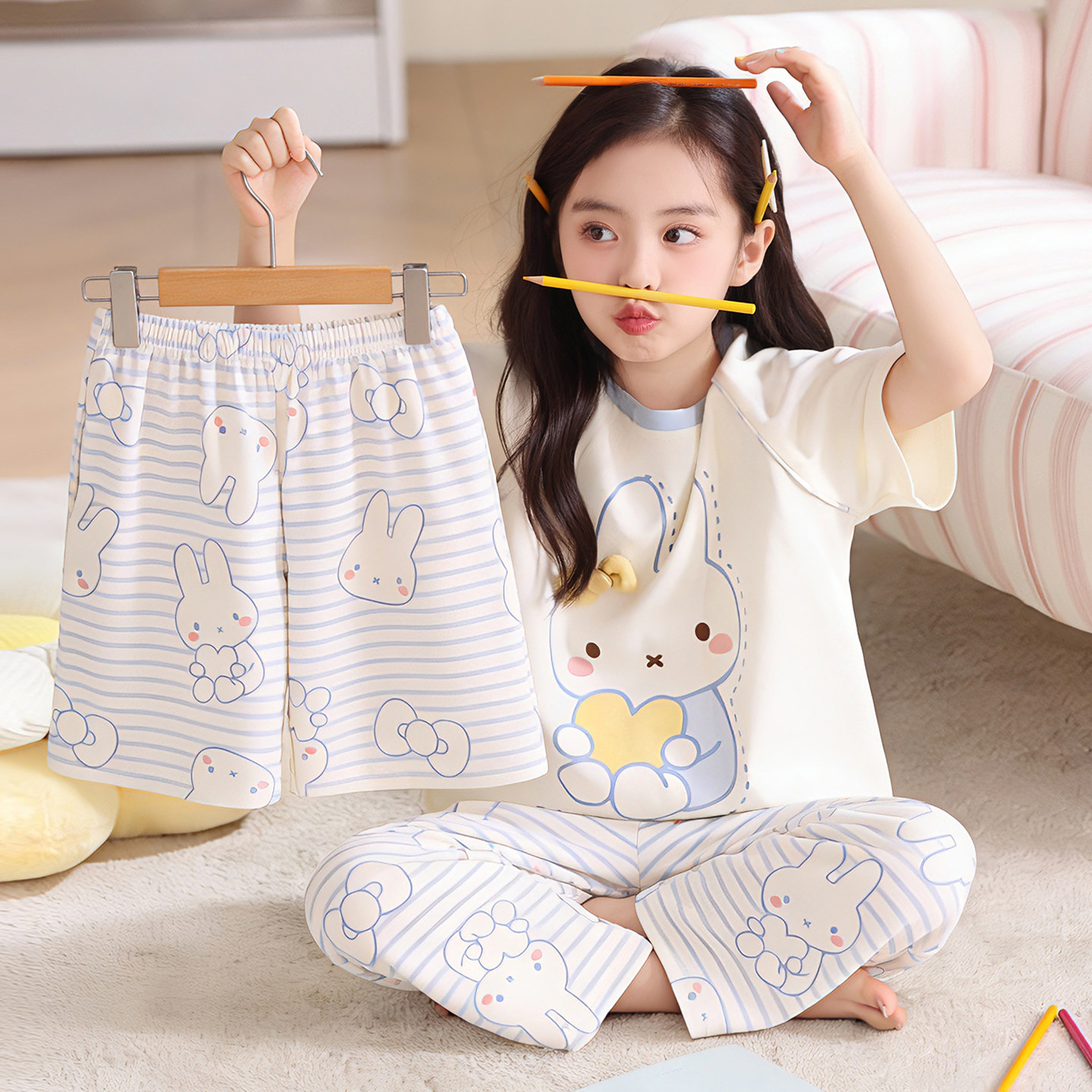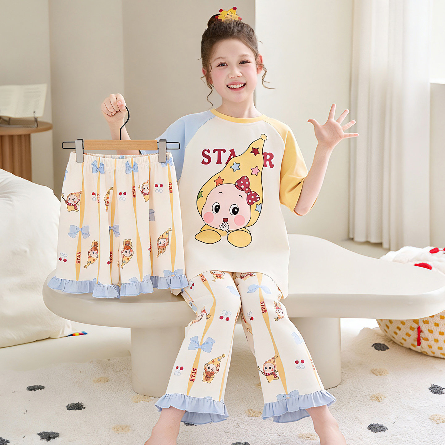 여아 잠옷 3종 세트 어린이 여름 순면 얇은 반팔 긴바지 여름 스타일 여아 홈웨어 2026 신상스토어 가기