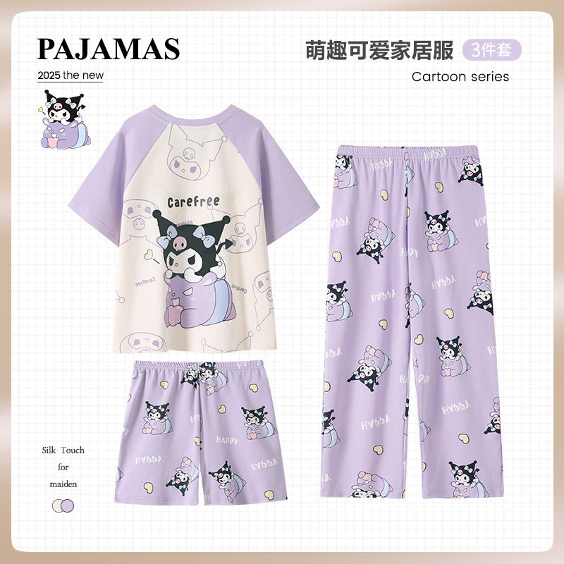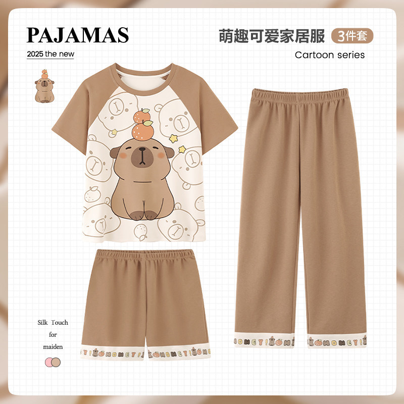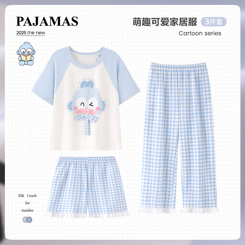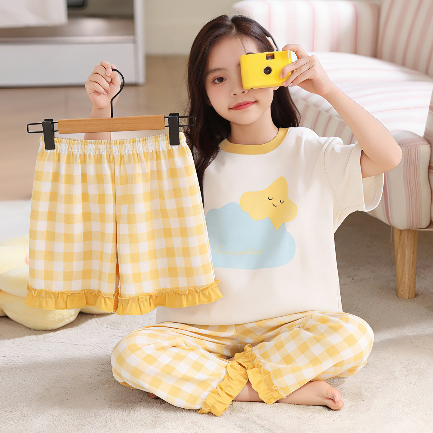 여아 잠옷 3종 세트 어린이 여름 순면 얇은 반팔 긴바지 여름 스타일 여아 홈웨어 2026 신상스토어 가기