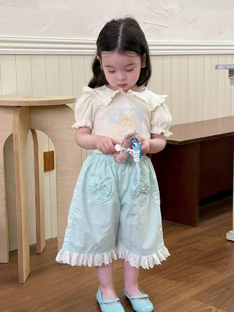 XY251394 여아 아동복 세트 2025 여름 유아 여아 한국 스타일 인형 셔츠 상의 아동 바지스토어 가기