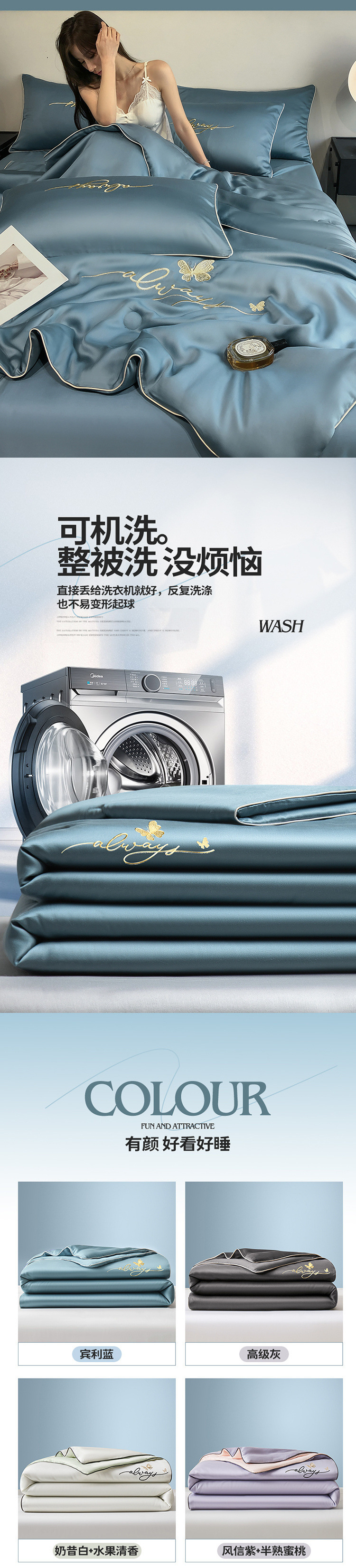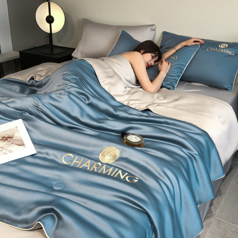 세탁기 세척 가능한 아이스 실크 여름 쿨 이불 4 피스 홈 에어컨 이불 싱글 더블 여름 이불 여름 쿨 얇은 이불