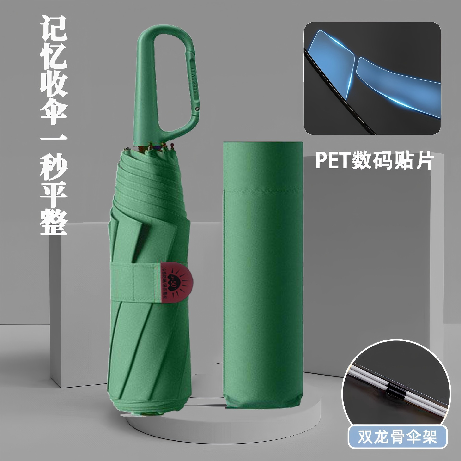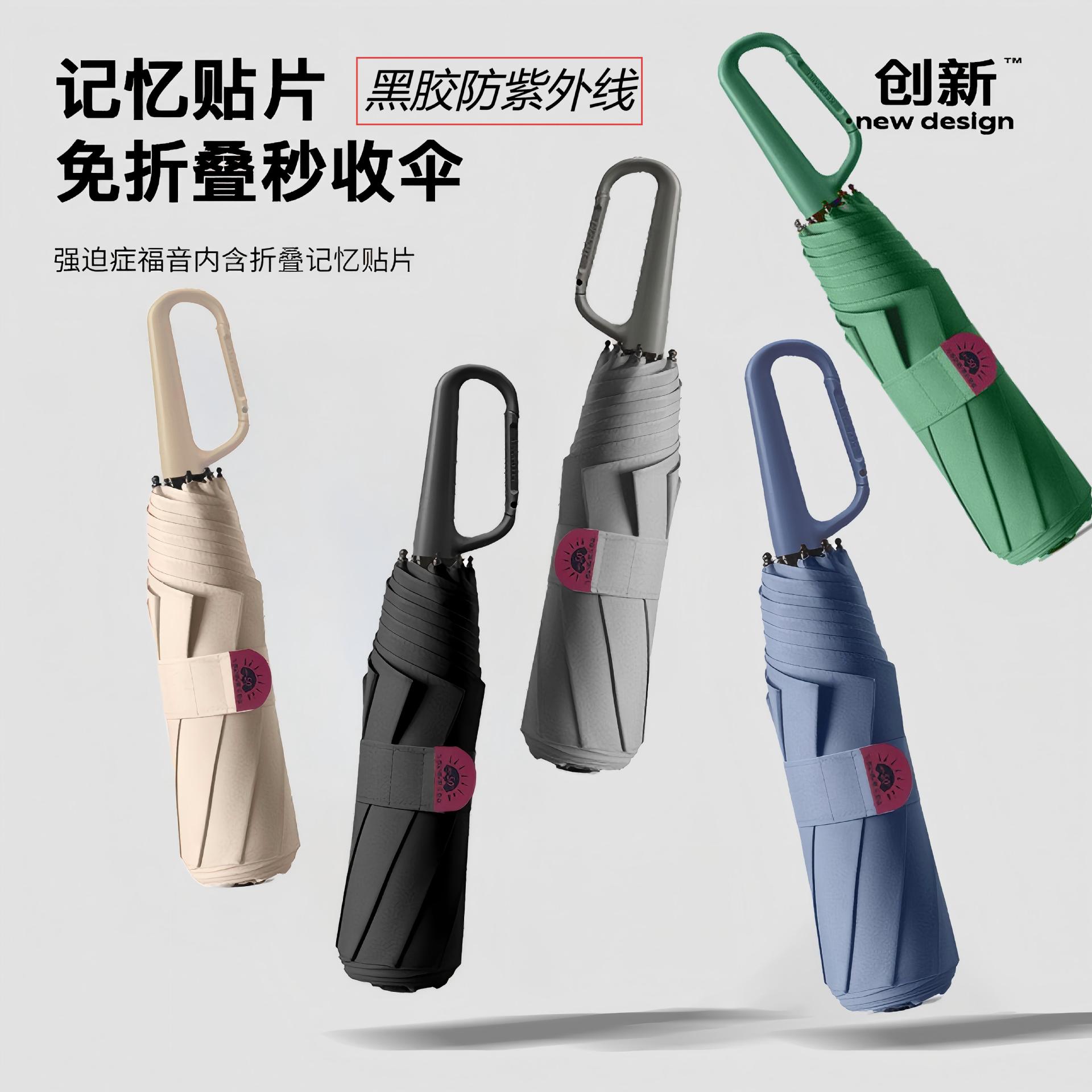 손으로 열 수 있는 링 버클 메모리 패치 우산, 접기 및 수납이 간편한 블랙 코팅 자외선 차단, 햇빛과 비 모두를 막아주는 우산, 제조업체에서 즉시 맞춤 제작 가능스토어 가기