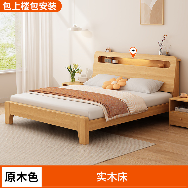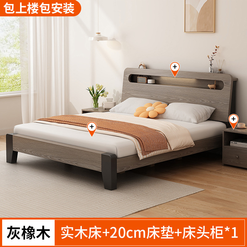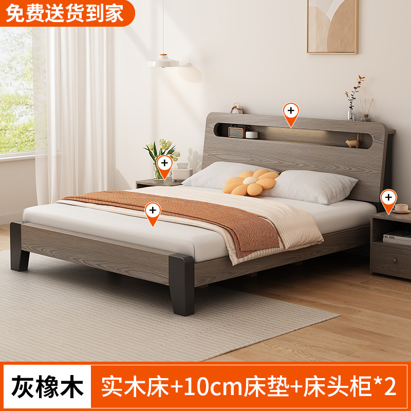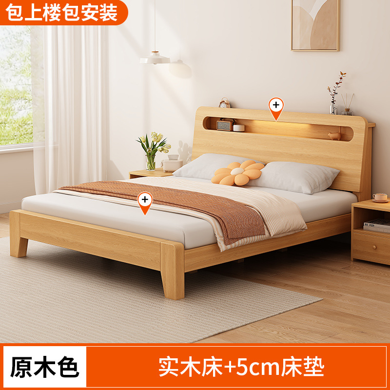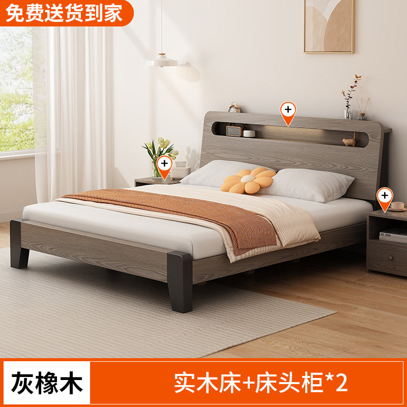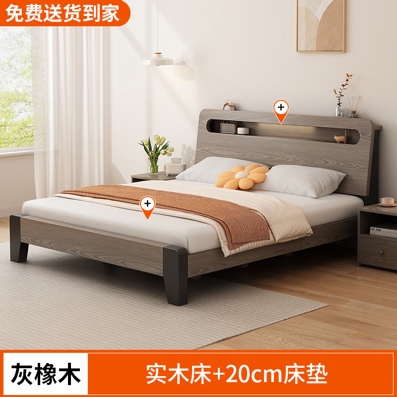 단단한 나무 침대 간단한 현대 1.5 m 더블 침대 마스터 침실 1.8m 임대 방 가정용 저장 1.2 m 싱글 침대 프레임스토어 가기
