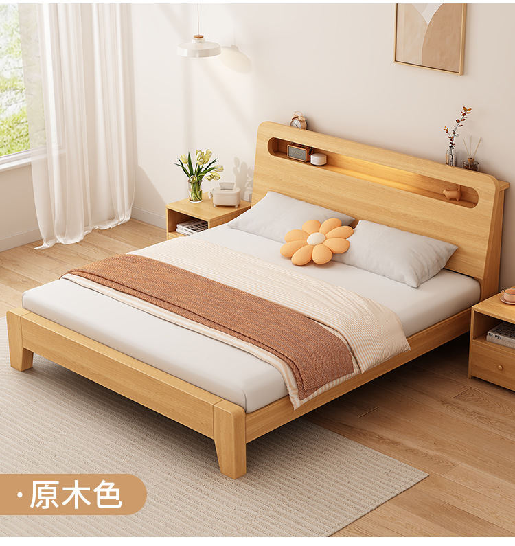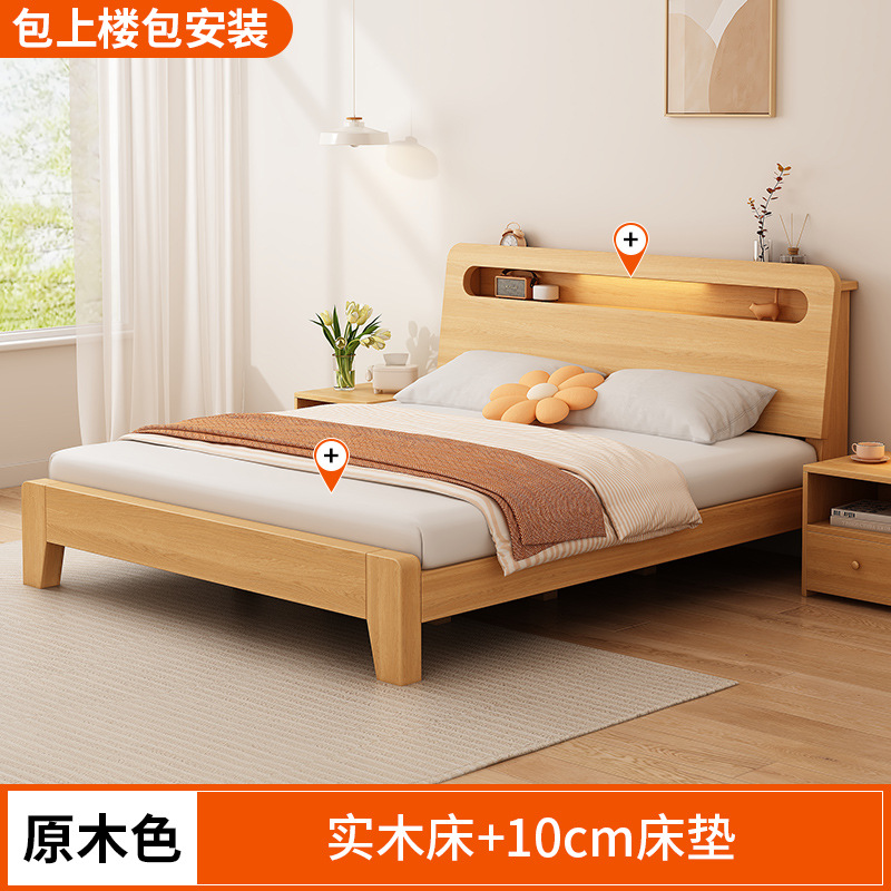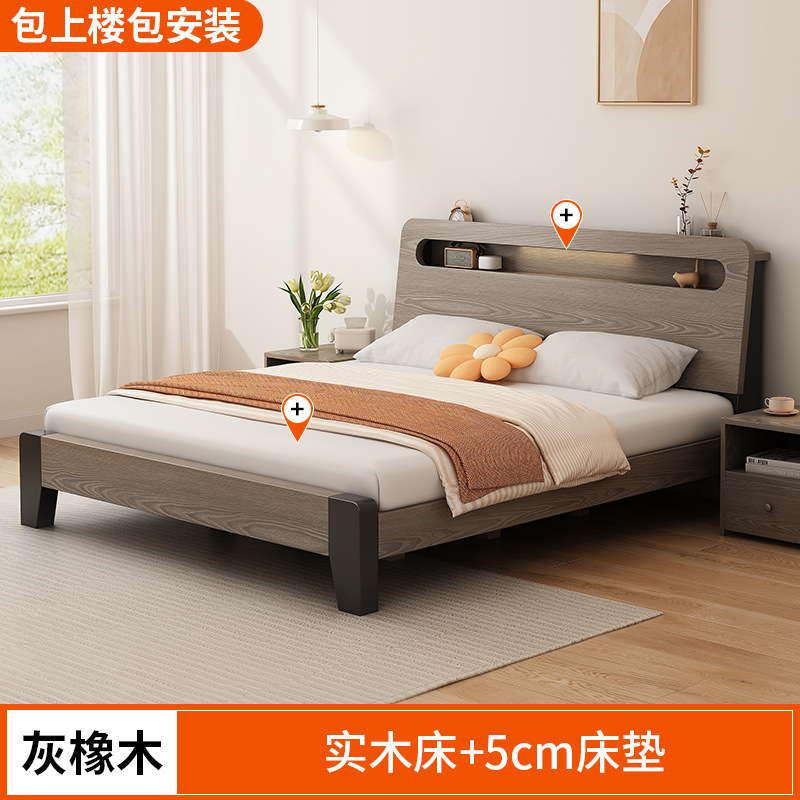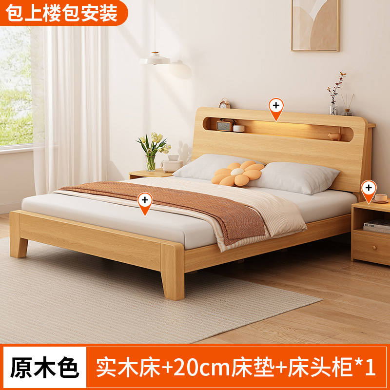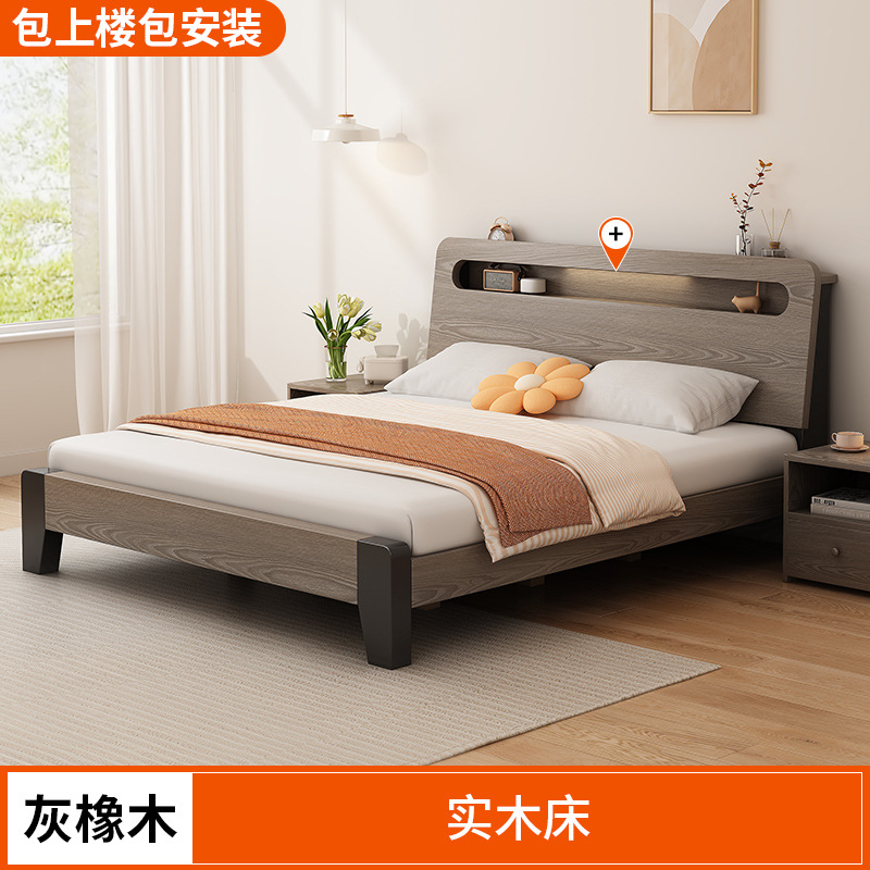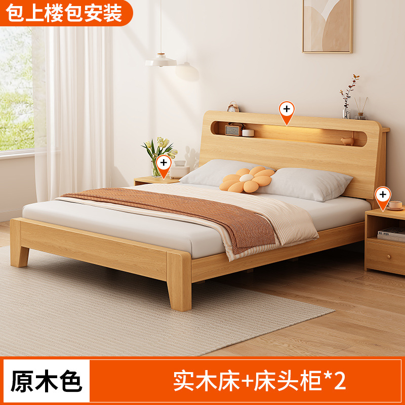 단단한 나무 침대 간단한 현대 1.5 m 더블 침대 마스터 침실 1.8m 임대 방 가정용 저장 1.2 m 싱글 침대 프레임스토어 가기
