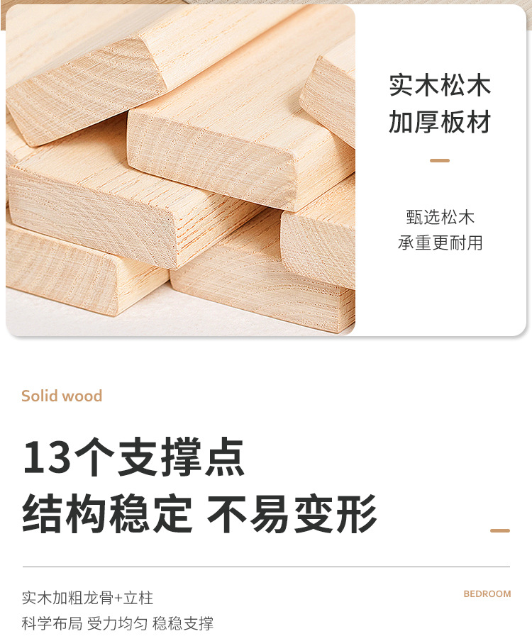 • 두꺼운 원목 침대 + 10cm 매트리스 + 침대 옆 테이블 * 1 [위층 포함]