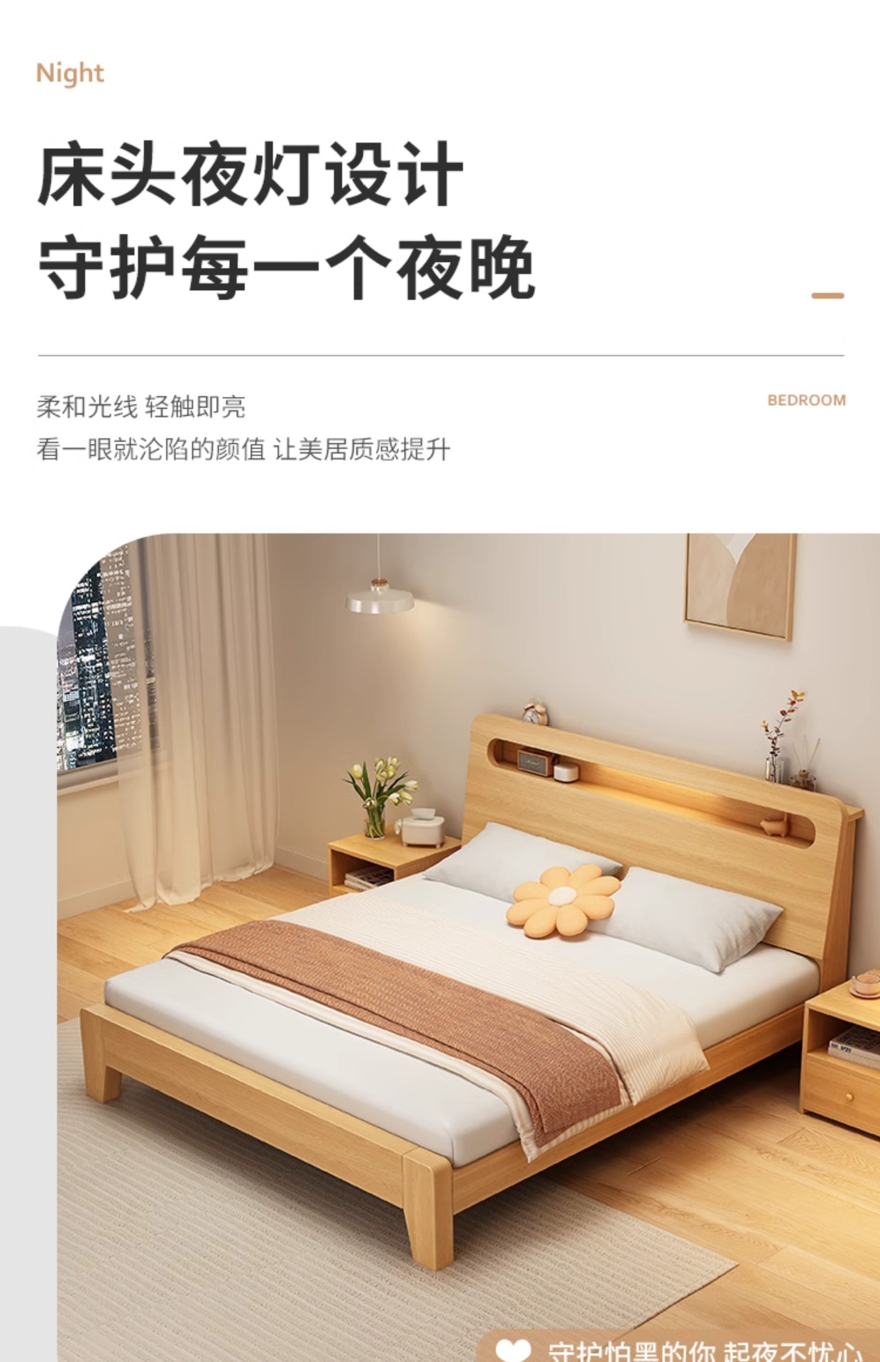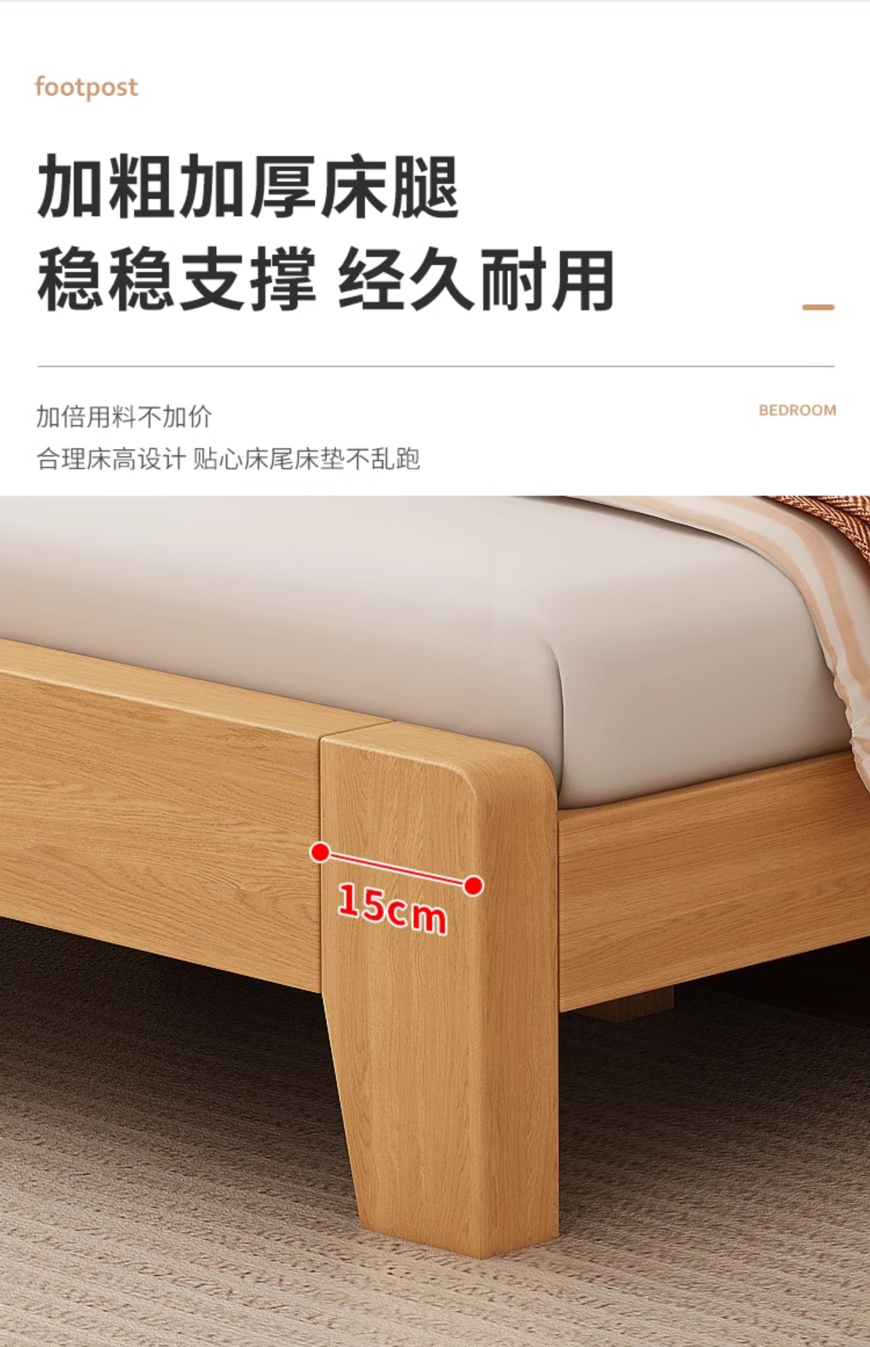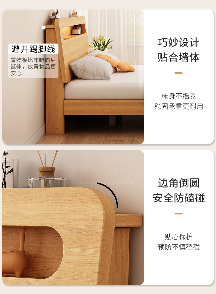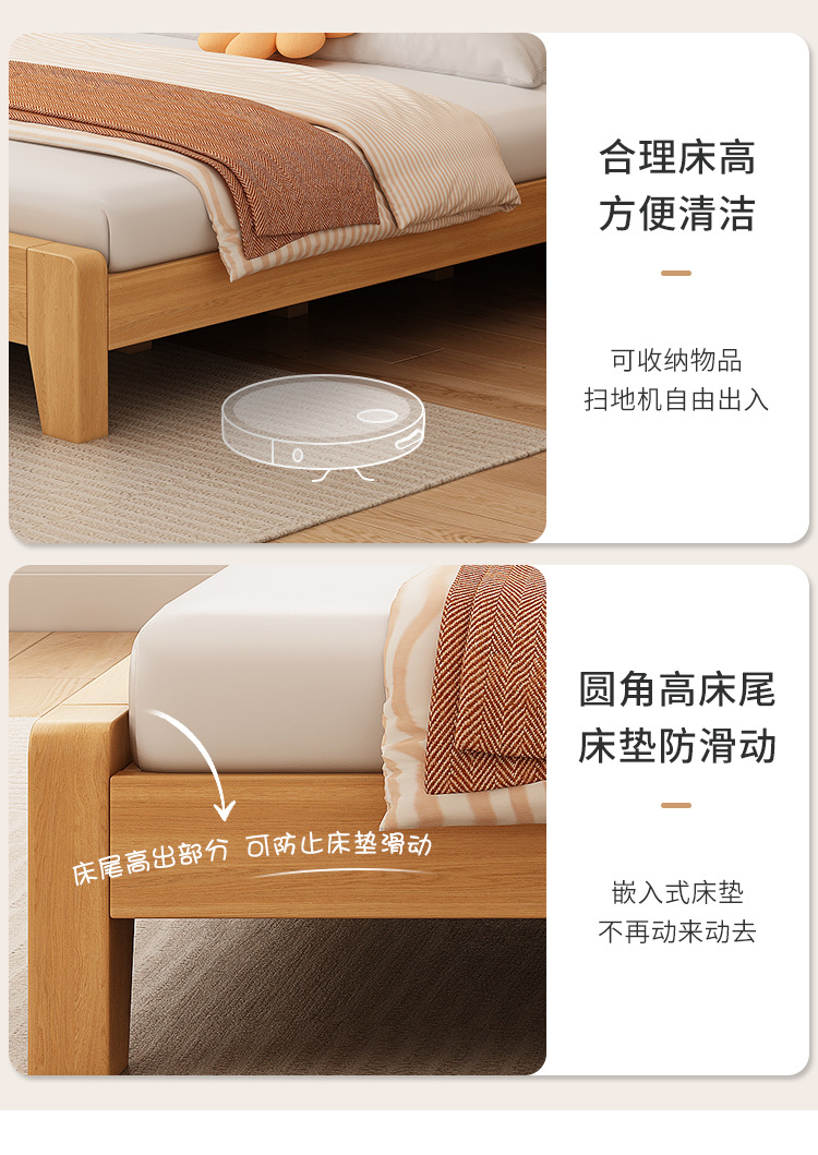 • 두꺼운 원목 침대 + 침대 옆 탁자*1 [위층 포함]