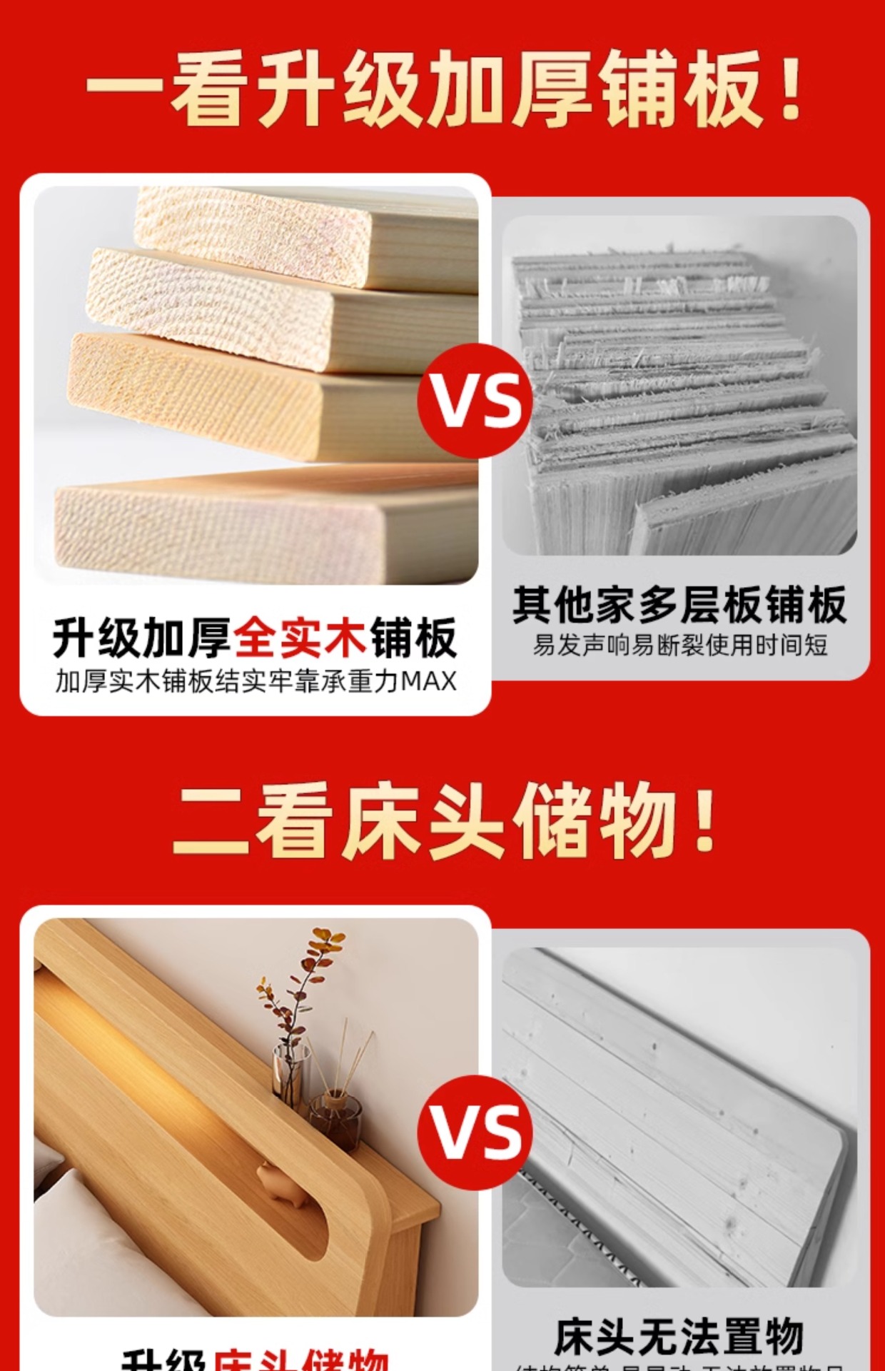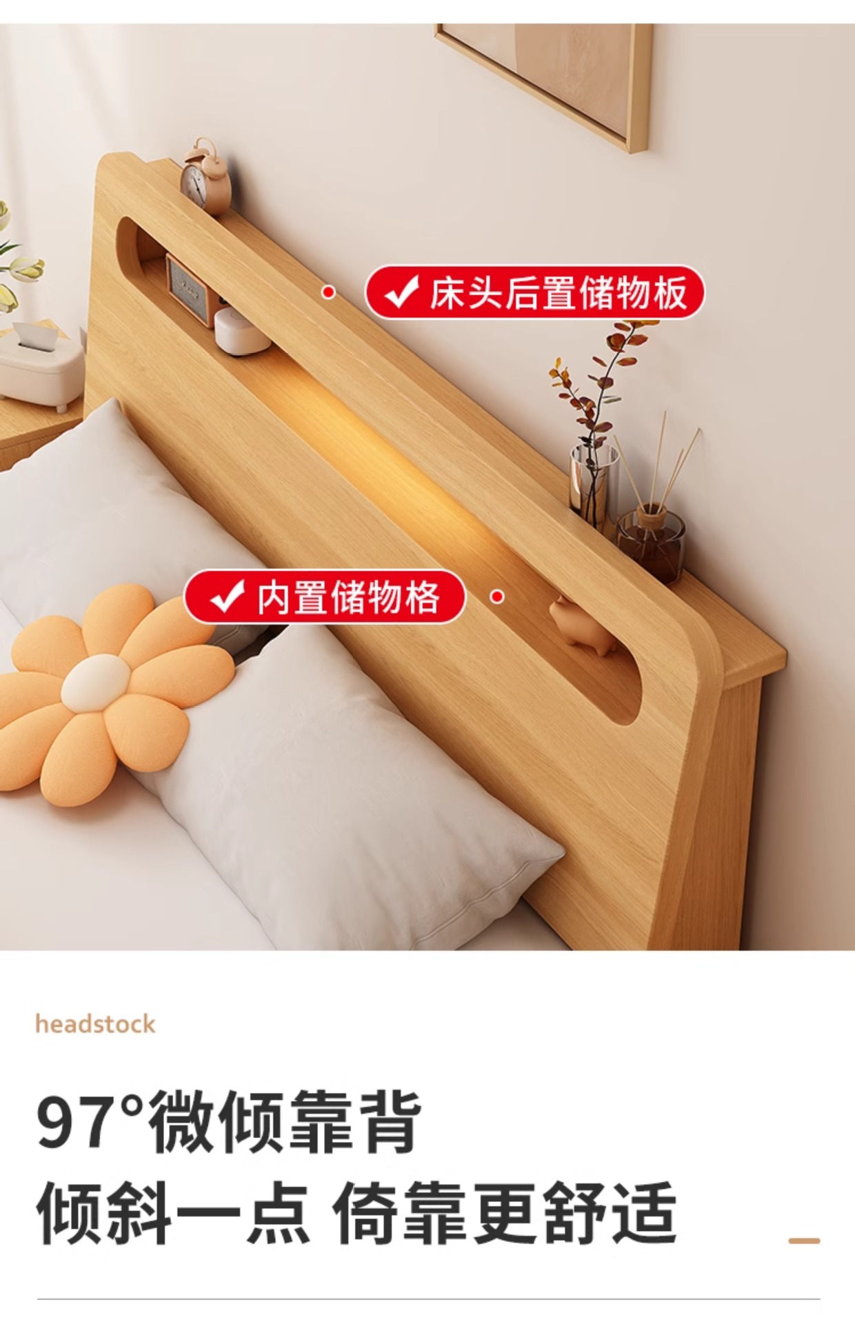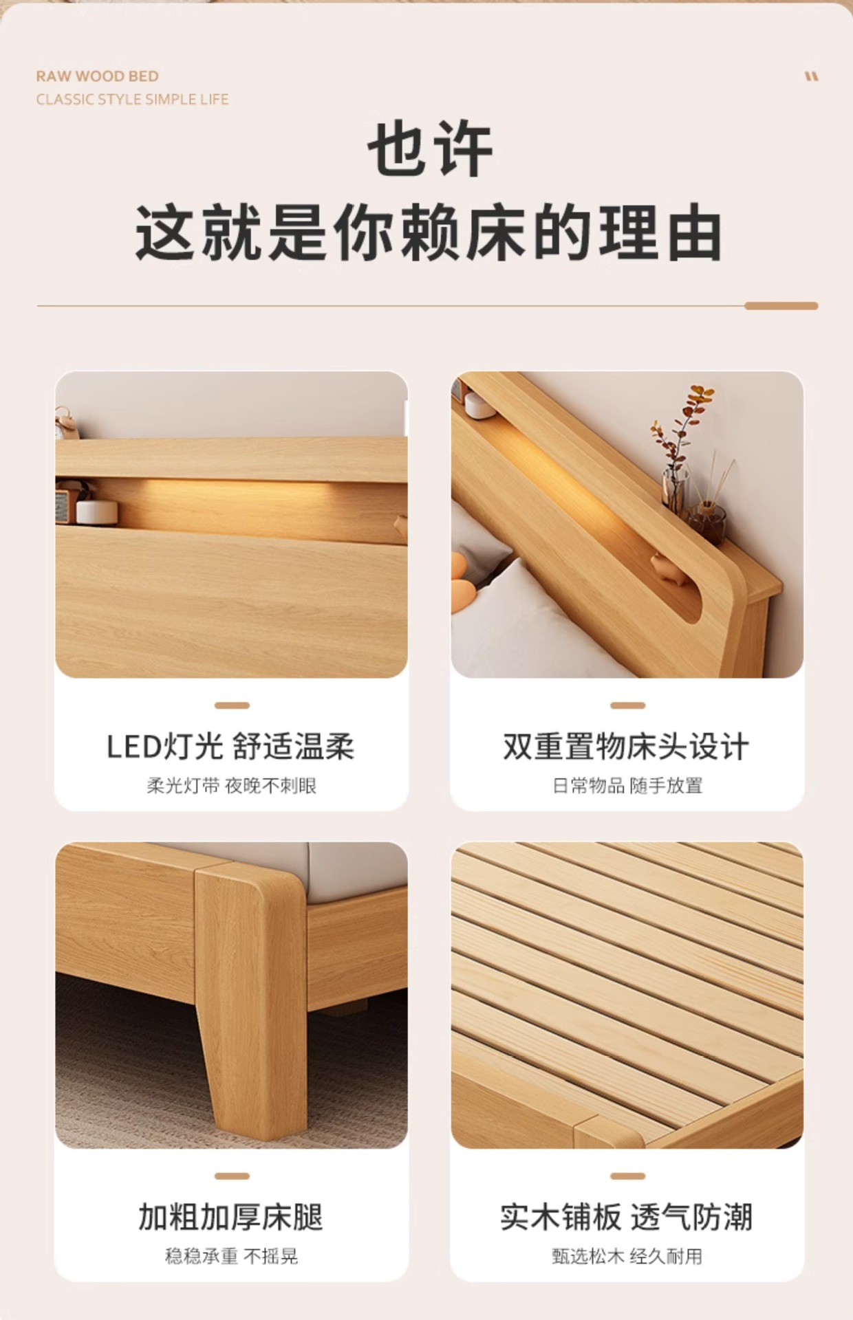 • 두꺼운 원목 침대 + 침대 옆 탁자*1 [위층 포함]
