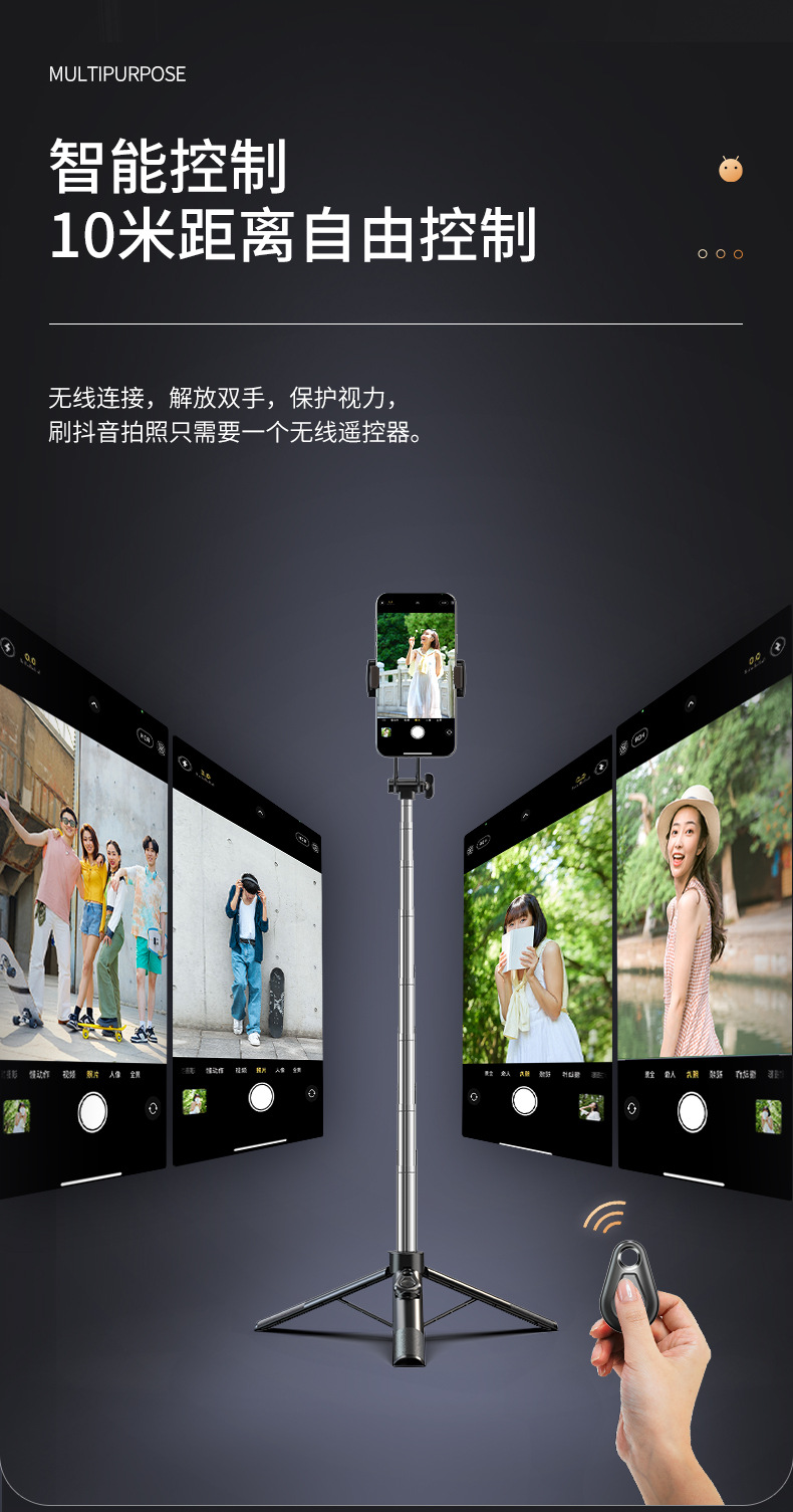 블루투스 셀카 스틱 통합 바닥에 장착 된 삼각대 휴대 전화 라이브 확장 휴대용 원격 제어 카메라 브래킷 유니버설스토어 가기