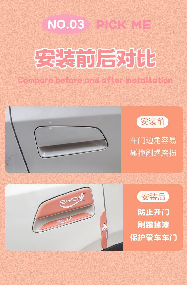 BYD 갈매기 문 손잡이 세트 긁힘 방지 스티커 자동차 스티커 보호 필름 내부 문 그릇 스티커를 위해 적당한스토어 가기
